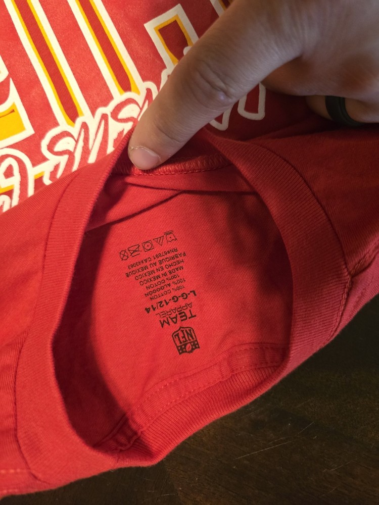 This Youth Kansas City Chiefs T-shirt is a stylish and comfortable option for young fans of the NFL team. The red shirt features the logo and colors of the team, perfect for showing off team spirit. Designed for unisex kids in size large, this shirt is great for both boys and girls who love the Chiefs. Perfect for casual wear or game days, this T-shirt is a must-have for any young sports enthusiast.