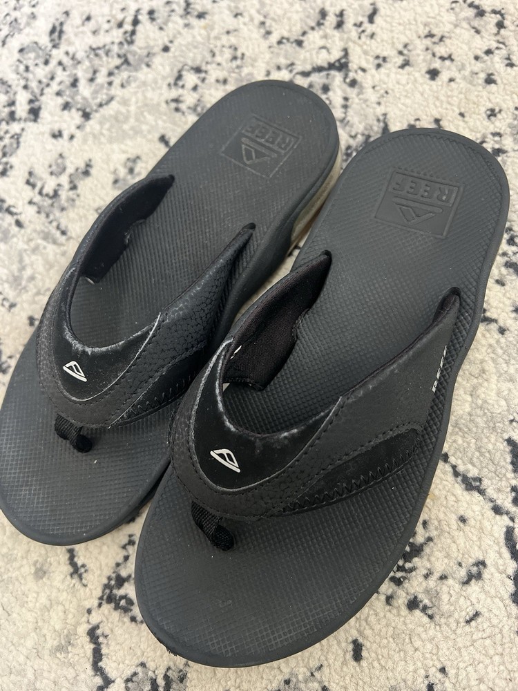 The Youth Reef Black Flip Flop Sandals in size 4/5 are a versatile and stylish option for young individuals. With a comfortable flip flop style and a classic black color, these sandals are perfect for both boys and girls. The Reef brand is known for its quality and durability, making these sandals a great choice for everyday wear. Perfect for the beach, pool, or just casual outings, these sandals offer both style and functionality for kids on the go.