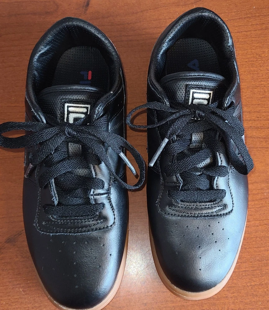 Youth Sz 5 Shoes Fila Original Fitness Classic Retro Casual Athletic Black Lace.