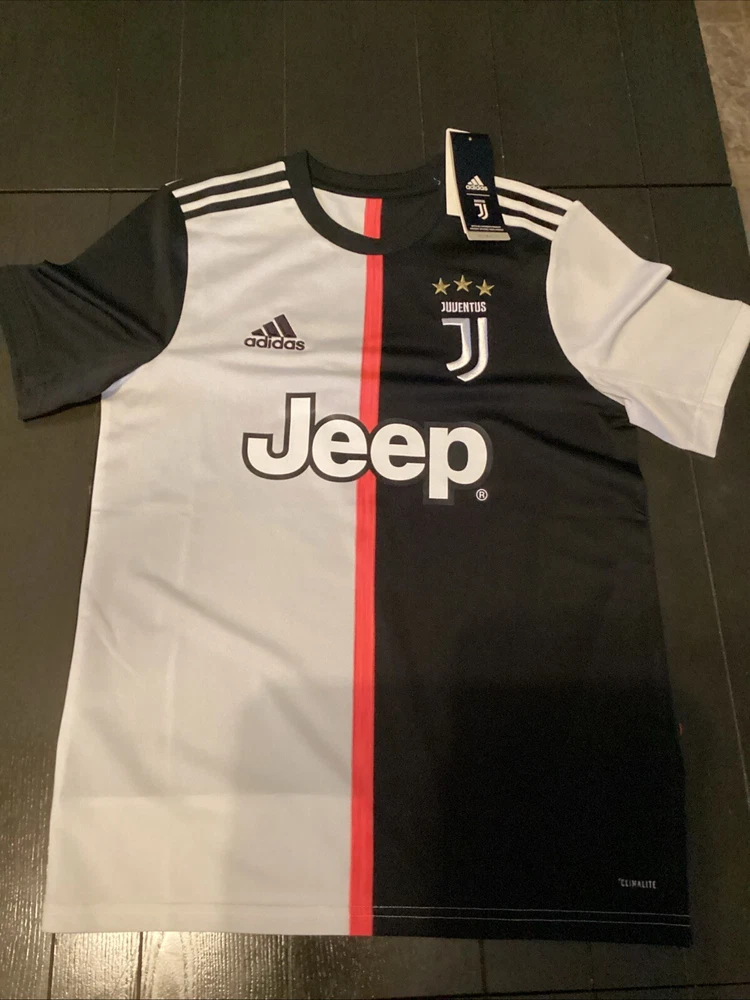 Embrace your love for the game with the adidas Cristiano Ronaldo Black Juventus Home Replica Soccer Jersey. Designed for the young fan in your life, this jersey celebrates the skill and legacy of Portugal's legendary striker, Cristiano Ronaldo. Officially licensed, it's a genuine piece of soccer memorabilia that lets you wear the pride of Juventus on your sleeve—literally. Crafted with care, this boys' size large jersey replicates the professional look and feel of Ronaldo's on-field kit. The sleek black design is complemented by the iconic adidas style, making it a standout addition to any soccer enthusiast's collection. Whether it's for game day or casual wear, this jersey is a testament to the sport's power to unite and inspire.