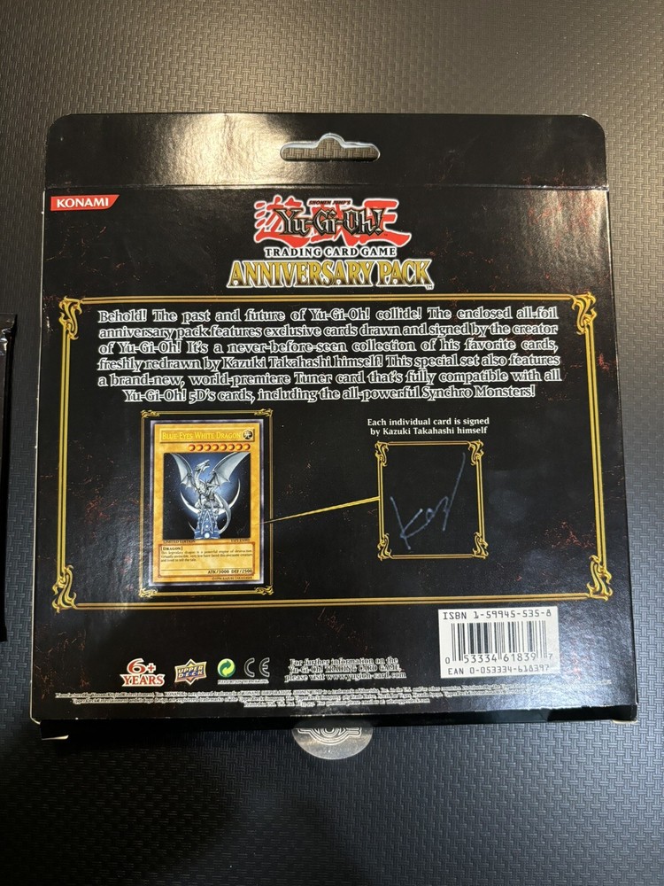 Set:Anniversary PackGame:Yu-Gi-Oh! TCGManufacturer:KonamiUPC:Does not applyLanguage:EnglishConfiguration:PackCharacter:Boxgtin13:Does not applyFeatures:Booster, Promo