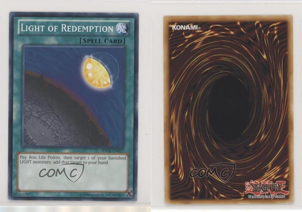2014 Yu-Gi-Oh! Cyber Dragon Revolution - Structure Deck [Base] - Unlimited #SDCR-EN027 Light of Redemption COMC Item: 75500250 - YuGiOh Card - Featuring Light of Redemption Search for more: 2014 Yu-Gi-Oh! Cyber Dragon Revolution Search for more: 2014 Yu-Gi-Oh! Cyber Dragon Revolution - Structure Deck [Base] - Unlimited View all of our Listings Auctions Buy It Now About Us Located in the beautiful Pacific Northwest, COMC (Check Out My Cards) is the world's largest consignment service for trading card singles. More than 10,000 people have used our consignment service to list over 50 million trading cards. Find out how we can help you consign your items on eBay by contacting us through eBay messaging. COMC -- "The Safe & Easy Way to Buy & Sell" Raw Condition for Modern Cards Unless otherwise noted, raw modern cards are listed in Near Mint-Mint condition or better. A NM-MT card appears to be Mint at first glance, but upon closer inspection, may exhibit some of the following: minor print defects (e.g. roller marks, print line, dimple), minor scratches, slight edge wear, and slight corner wear. Centering is clearly visible in the images provided and does not factor into our condition assessment. Raw Condition for Vintage Cards Unless otherwise noted, raw vintage cards are listed in Excellent condition or better. An EX card may exhibit some of the following: minor rounding of corners, surface wear, print defects, light scratches, and slight edge wear/chipping. Centering is clearly visible in the images provided and does not factor into our condition assessment. Domestic Shipping Combined shipping for multiple items is available. To receive combined shipping, please ensure all desired items are in your eBay shopping cart before proceeding to checkout. eBay limits orders to 40 items per order. We automatically combine multiple orders placed on the same day. If you place multiple orders on the same day, please contact us to request a refund of applicable shipping costs. Signature confirmation may be required on invoices over $400. All cards are protected and shipped securely. International Shipping COMC offers eBay's International Shipping (EIS) for international orders under $2,500* (see country exceptions below). All duties and import fees are paid at checkout; in the rare event that there are additional import fees upon delivery, these are borne by the buyer. EIS packages route through a shipping hub in Erlanger, KY before shipping to their final destination. Please note that EIS does not allow for combined shipments. The shipping rates are determined by eBay and cannot be adjusted. *Maximum sale price exceptions: Colombia, Kuwait ($2,000); Taiwan ($1,539); Chile, Costa Rica, Guatemala, Honduras, Trinidad and Tobago ($1,000); Antigua and Barbuda, Aruba, Belize, Dominica, Grenada, Philippines, Saint Kitts and Nevis, Saint Lucia, Montserrat, Turks and Caicos Islands ($500); Dominican Republic, El Salvador ($200). Please request a shipping quote through eBay messaging for orders that exceed the maximum sale price supported by eBay's International Shipping. You will be responsible for all duties and import fees for international orders shipped outside the EIS. All cards are protected and shipped securely. Payment COMC does not accept offers on our cards through our eBay storefront. COMC utilizes eBay’s managed payments system. If you are experiencing difficulties making a payment, please contact eBay for assistance. Return Policy Returns are only accepted on the rare occasion the item is not as described. If you are making a return, please initiate the return process through eBay so a mailing label can be provided for you. Prior to listing, our expert team carefully assessed this item to represent it accurately. Please review the description and high-definition images prior to purchasing to ensure this item meets your satisfaction. We welcome you to contact us if you have further questions about this item. Trust and Integrity COMC carefully assesses each item consigned to us to prevent fraudulent items from entering the marketplace. If you believe an item offered on COMC may be fraudulent, please contact us with details so we can investigate the issue. Items we determine are outside our supported items policy may be removed. Last Modified: 5/30/2025 12:07:31 PM PDT