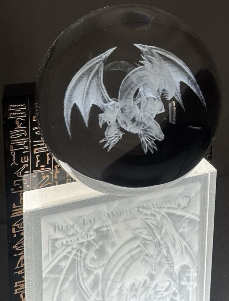 This stunning Blue-Eyes White Dragon crystal card is an absolute treasure for any Yu-Gi-Oh! collector. The ultra-rare 3D etching brings Kaiba’s iconic monster to life with incredible detail, and knowing only 50 exist makes it even more special. A must-have for serious fans—this piece truly stands out as a rare and breathtaking display piece.
