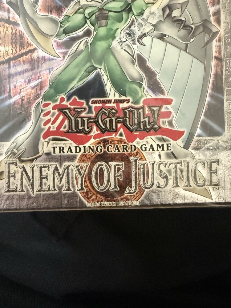 The Yu-Gi-Oh! Enemy of Justice 1st Edition Sealed Booster Box English Ed is a highly sought-after collectible for fans of the Yu-Gi-Oh! TCG. Manufactured by Konami in the United States in 2006, this box contains cards in standard size made of card stock. The set, Enemy of Justice, features 1st Edition cards that are sealed in the box, ensuring their authenticity and value for collectors. This limited edition booster box offers a special addition to any Yu-Gi-Oh! card collection, making it a must-have for enthusiasts of the game.