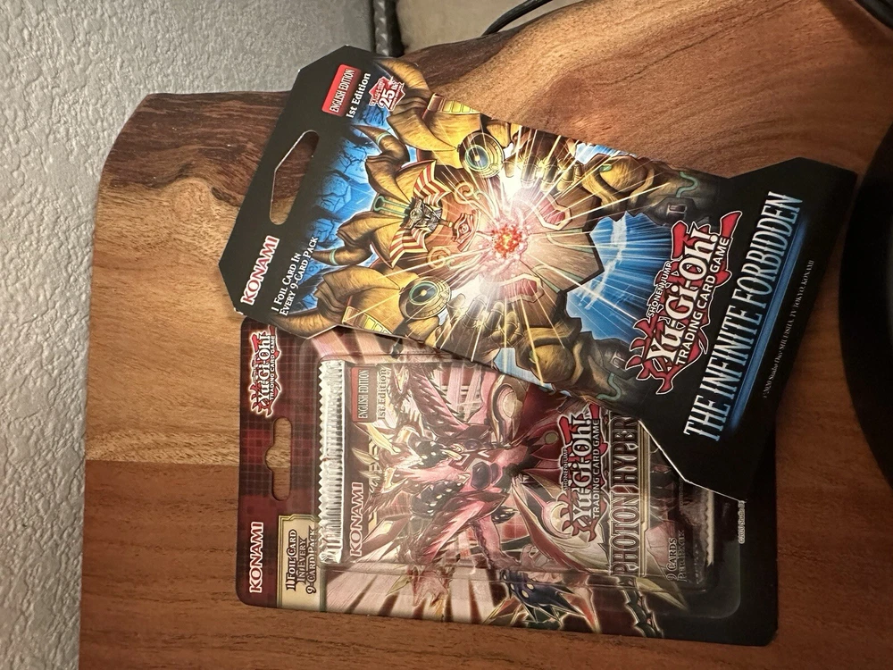 Yu-Gi-Oh Lot Of 9 Sealed Product Includes 2 - Retro pack box includes (4) Retro packs 2 - 2021 ancient Tins Each tin includes 3 Mega Packs 2 - Legend of blue eyes 25th anniversary booster packs 1 - metal raider booster pack 1 - Photon Hypernova 1st edition blister pack 1 - The Infinite Forbiddem 1st edition blister pack Shipped with care