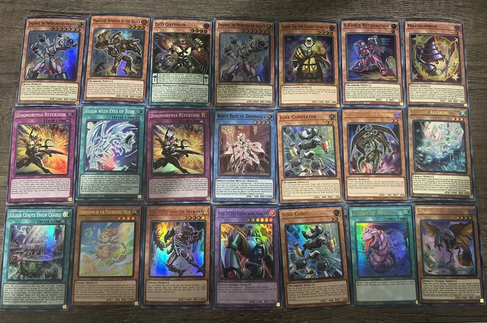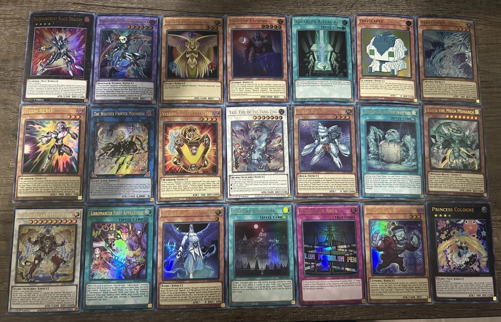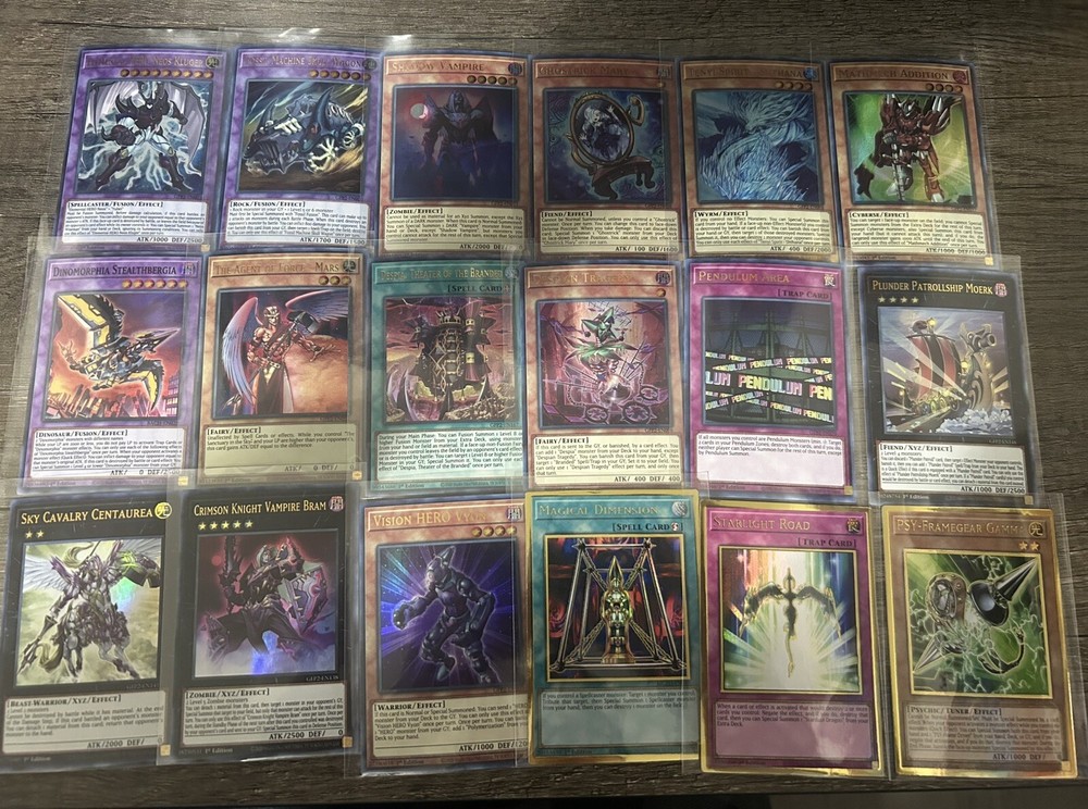 Lot of 142 holo, rare, foil, secret rare and gold bordered Yu-Gi-Oh cards from various contemporary sets from the last couple years. All cards are in NM condition. A couple of them are duplicates. All cards will arrive fully sleeved and safely packaged to keep them in NM condition. All offers welcome and feel free to ask any questions about any of the cards or sets they are from, the rarity, etc. All serious offers welcome! Feel free to check out my other listings and give me a follow!