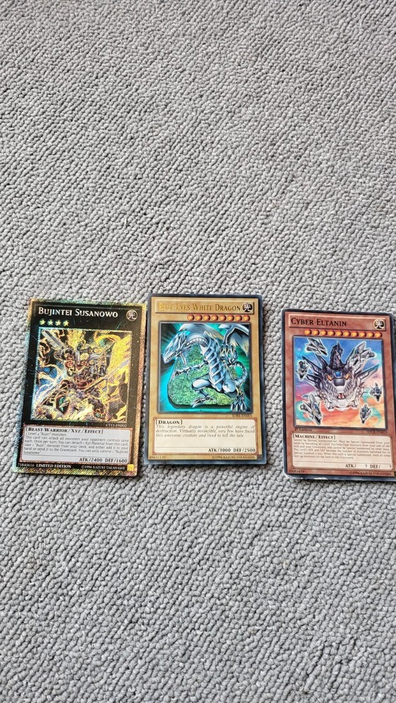 Yu-Gi-Oh! Masters card collection with Blue eyes white dragon and Cyber monsters. Also with Atlean deck and a dragon deck along eith many others.