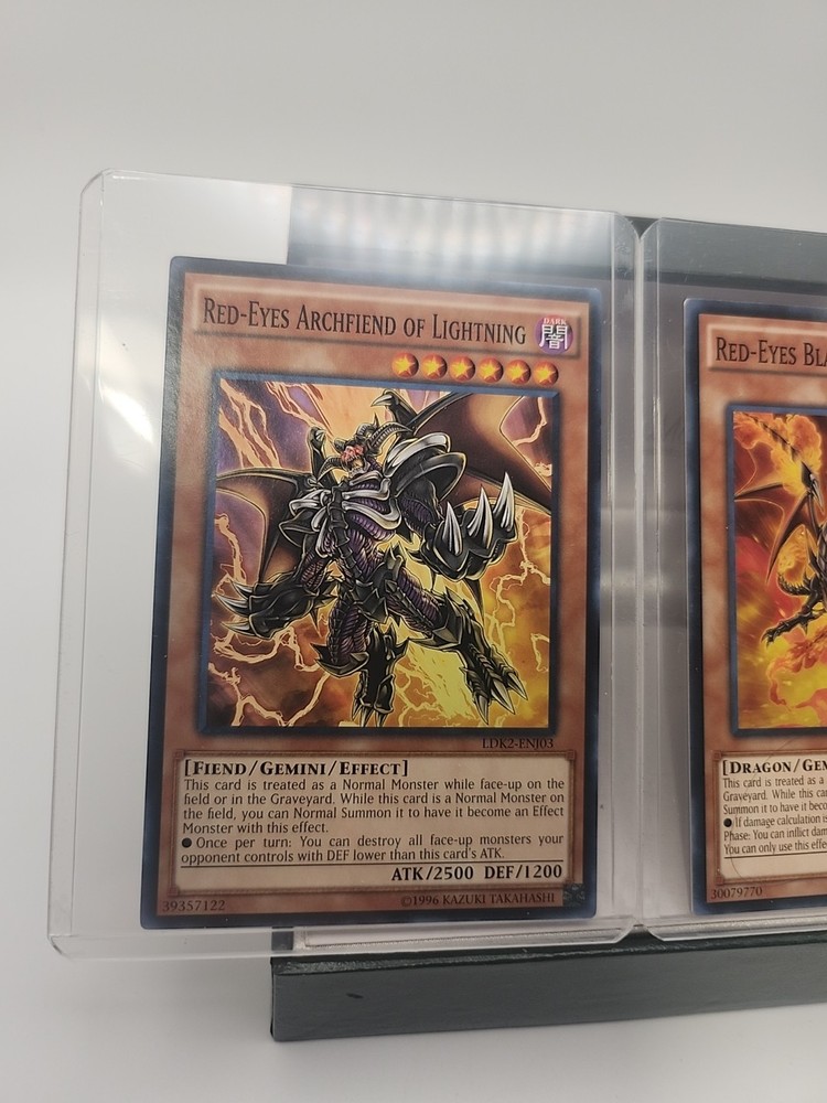 The Yugioh Red Eyes Dragon Lot 2 consists of 3 standard-sized Yu-Gi-Oh! TCG cards manufactured by Dragon. The cards are in English and of normal type. This lot is ideal for collectors or players looking to enhance their deck with powerful Red Eyes Dragon cards.