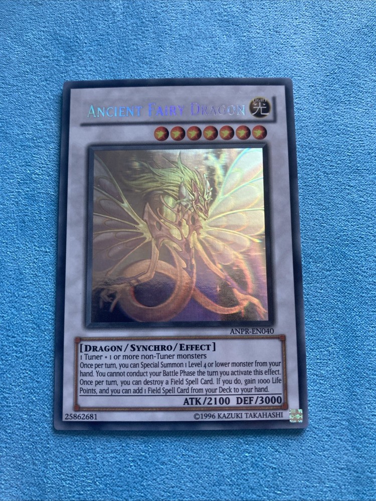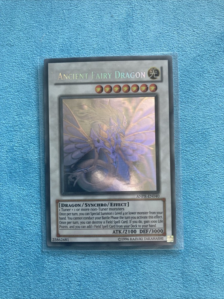The Yu-Gi-Oh! TCG Ancient Fairy Dragon Ghost Rare card from the Ancient Prophecy set features the iconic Dragon attribute, making it a highly sought-after collectable for fans and players alike. Manufactured by Konami, this limited edition card with the character of Ancient Fairy Dragon is a valuable addition to any Yu-Gi-Oh! TCG collection. With its Ghost Rare rarity and Synchro/Effect Monster card type, this card offers a unique and powerful gameplay experience for players looking to enhance their decks with rare and powerful cards.