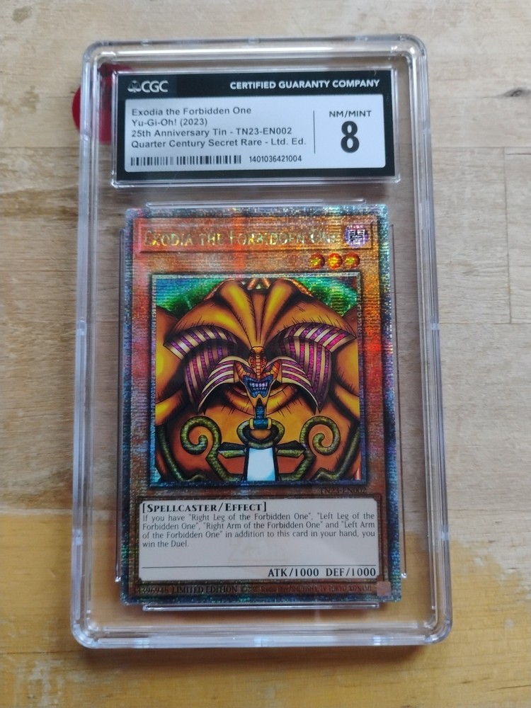 Exodia the Forbidden One TN23-EN002 Quarter Century CGC Grade 8 and Left Arm of the Forbidden One LOB-EN123 CGC Grade 9.5