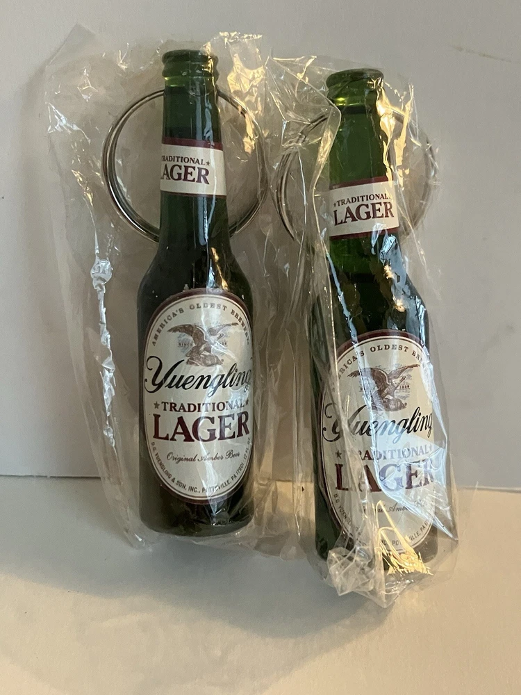 2 brand new/sealed miniature Yuengling Traditional Lager bottle key chains/bottle openers. Sealed. 2 individually packaged. New. Thanks for looking. Now for the fine print…… I use the good old USPS for all shipping. Despite their recent increase in shipping rates, I try to charge fair shipping. On certain items I charge a $1.00 handling fee to offset the price of bubble wrap, boxes, Styrofoam peanuts, etc. I’m very happy to combine shipping on multiple items that you purchase. I ship every day; Monday through Friday (except for snow and ice events) but do not ship on Saturdays.