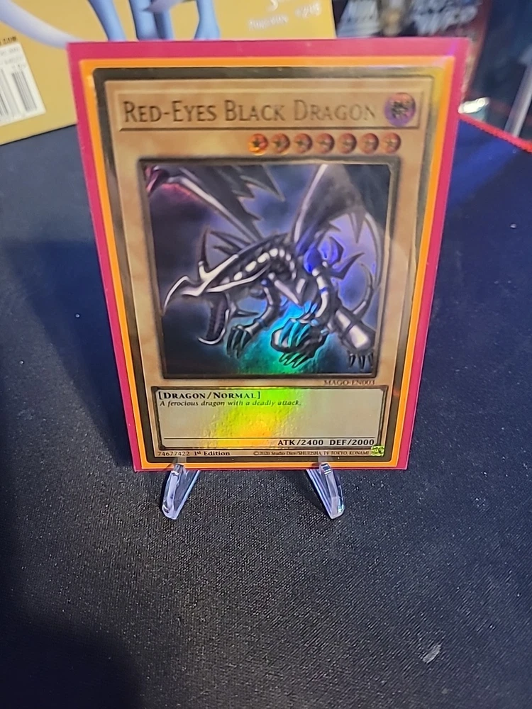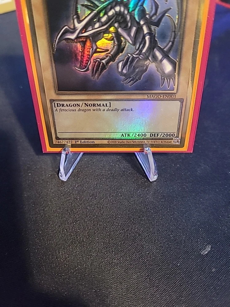 MAGO-EN002 Maximum Gold 1st Edition Lot of Cards (Dark Magician & Red Eyes More) The Gaia card does have a chip on the bottom that can be seen in the picture