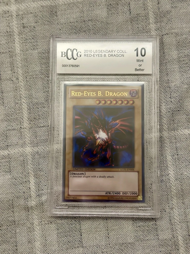 Beckett graded 10! 3 card lot 2010 legendary collection -Slifer The Sky Dragon (LC01-EN002) -The Winged Dragon of Ra (LC01-EN003) -Red Eyes B. Dragon (LC01-EN006) All slabs in excellent condition