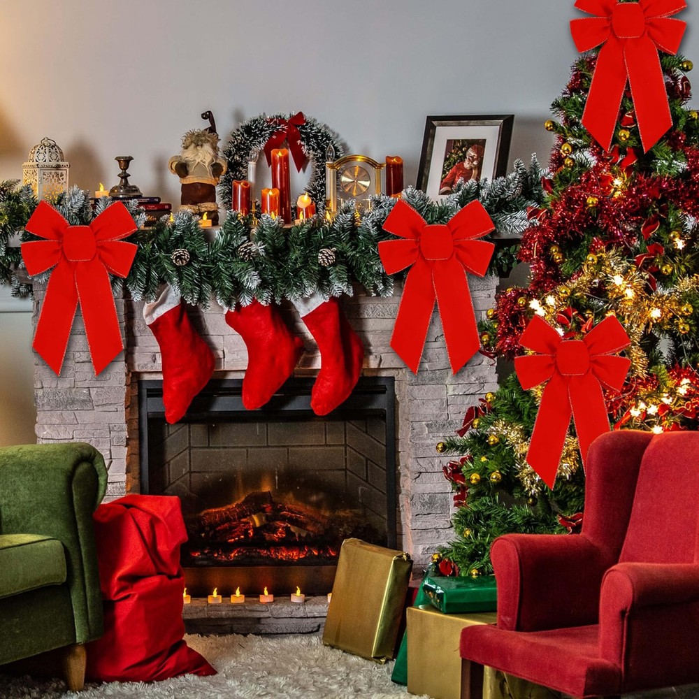 Yuubin 10 Pcs Red Bows Christmas Tree Decorations,9”x13” Large Velvet Wreath ... Unique Material: These christmas tree bows are made of velvet material with gold wired edge. The unique edge fine iron wire design that can manually restore bloom even if squashed,and it never wither. Larger Size: These red bows christmas decorations approx: 9in x 13in/23cm x 33cm. Large size bow is more conspicuous and Get more compliments. Classic Design: These outdoor christmas bows are featured with classic velvet material, decorated with gold wired edge, which connect classic design and christmas holiday style into one; It's full of festive feeling in appearance, can highlight the warm atmosphere of the festival after being applied. Applicable Scenes: Versatile decoration for your christmas bows decorations, you can tie the red christmas bows for wreaths, trees,windows, doors, walls, stairs, fences, fireplace, etc. add elegance and beauty to your home, office, yard, party, wedding, picnic,holiday and other occasions. Great Gifts: These large christmas bows will be an ideal choice for gifts giving in christmas holiday, you can directly prepare these beautiful bows as crafting gifts for your friends who love DIY, or use these bows to decorate your holiday gifts and send the gifts to your family, lover, relatives, colleagues or other people. 10 Pcs Red Bows Christmas Tree Decorations,9”x13” Large Velvet Wreath Bow with Glitter Gold Edge for Xmas Home Fence Stairs Railing Fireplace Indoor Outdoor Front Door Decor Shipping We offer FREE shipping on all orders! We ship within Three business days of payment, usually sooner. We use a selection of shipping services such as UPS, FedEx, USPS etc. We only ship to the lower 48 states, no APO/FPO addresses or PO Boxes allowed. Local pickups and combined shipping options are not provided at this time. Return You can return a product for up to 30 days from the date you purchased it. Any product you return must be in the same condition you received it and in the original packaging. Please keep the receipt. Payment We accept payment by any of the following methods: PayPal Please pay as soon as possible after winning an auction, as that will allow us to post your item to you sooner! Feedback Customer satisfaction is very important to us. If you have any problem with your order, please contact us and we will do our best to make you satisfied. Contact Us If you have any queries, please contact us via ebay. We usually respond within 24 hours on weekdays. Please visit our eBay store to check out other items for sale! Thank you for shopping at our store.