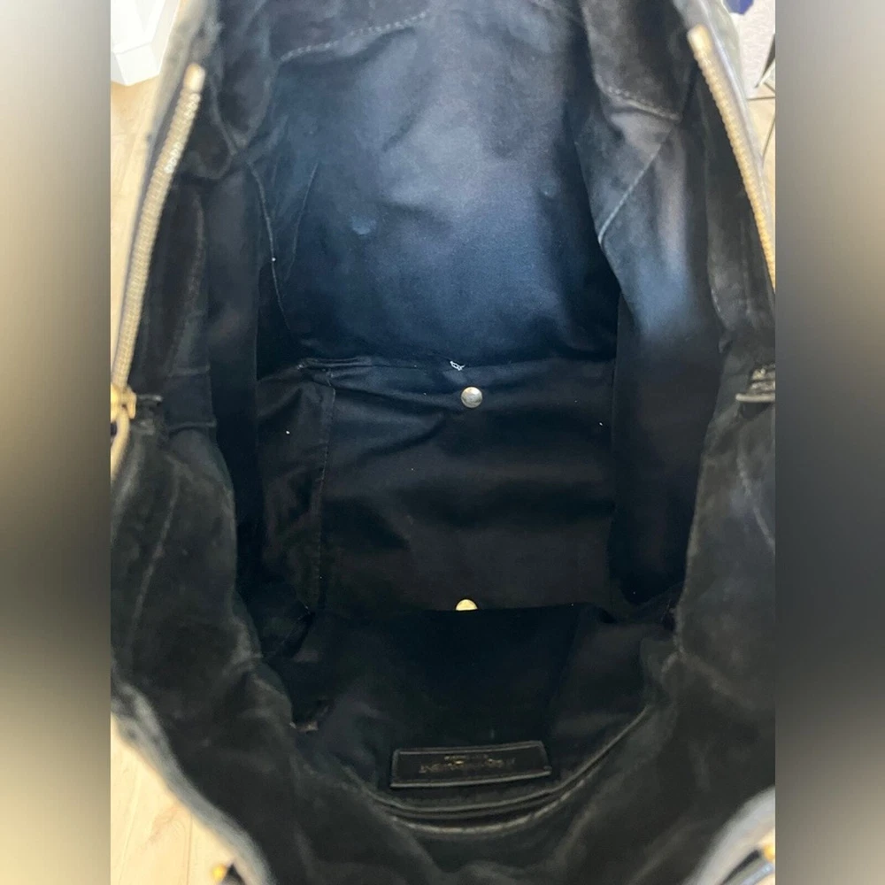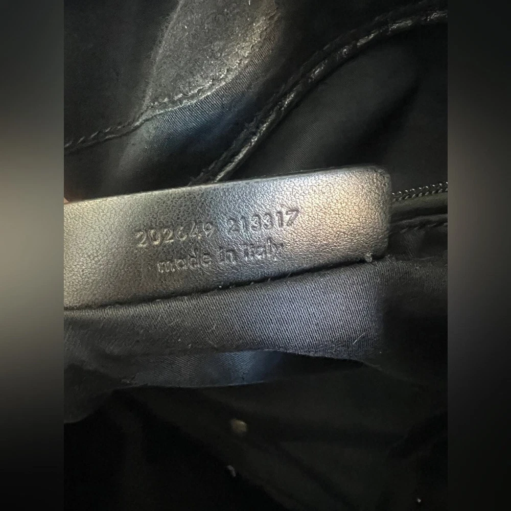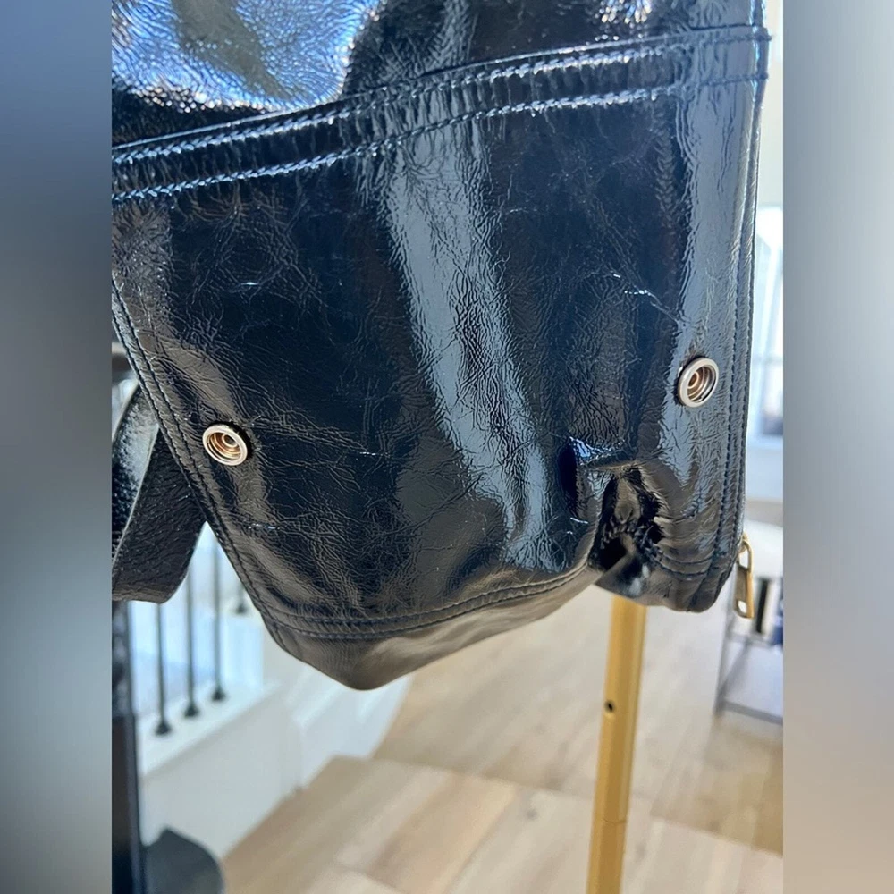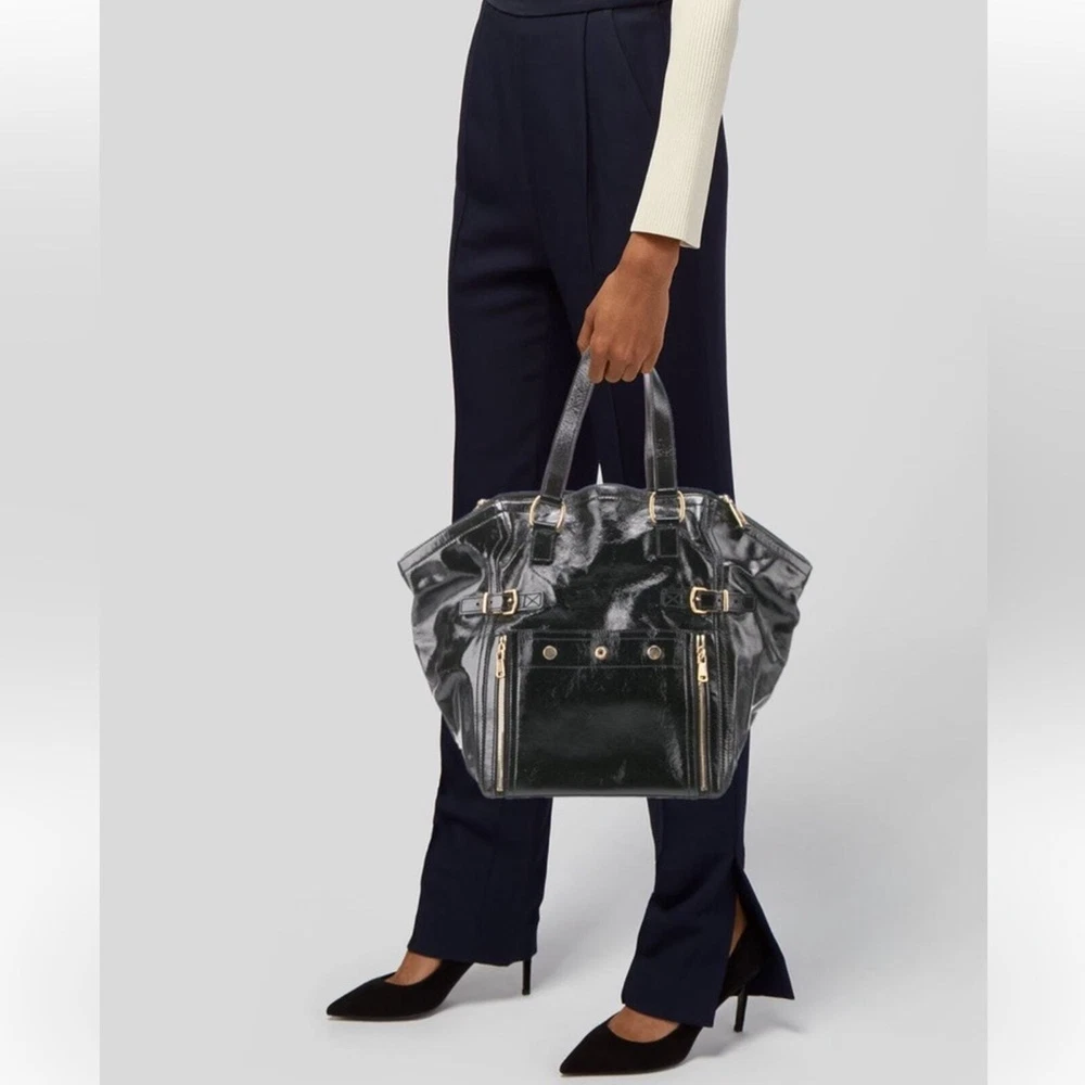 Excellent pre owned condition Authentic YSL Black Patent Clean exterior with signs of minor wear Working zippers and snap Inside has a couple spots but they are minor and it’s mostly clean Leather is in good shape Gold hardware Shoulder Strap Drop: 6.75" Handle Drop: 7" Height: 13.25" Width: 10.25" Depth: 8.75" I sell many authentic designer items on here so please see my reviews and purchase with peace of mind