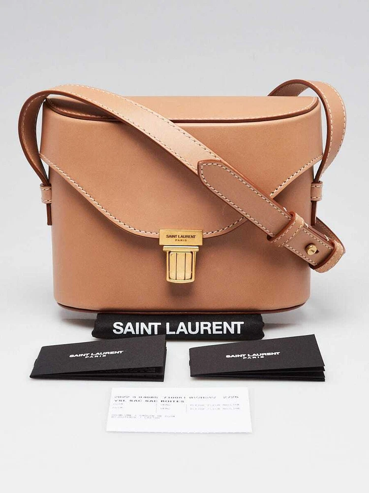 Yves Saint Laurent Beige Box Leather Medium Tuc Bag Description The Saint Laurent Beige Leather Medium Tuc Bag is composed of smooth glossy calfskin leather in a structured box shape. It features an adjustable leather shoulder strap and slide-lock push closure. This sleek bag is not to be missed. Retail price is $1990. Condition The exterior is clean with scuffs and scratches. The strap has light creasing and scratches. The hardware remains crisp. The interior is clean and in very good condition. Details Overall Condition: Like new Exterior Condition: Interior Condition: Includes: Dust bag, booklets, tag Material: Beige leather Handles: Single flat leather shoulder strap Closure/Opening: Flap top with push lock closure Interior Lining: Suede Interior Pockets: One card slot Hardware: Goldtone Origin: Italy Production Year: 2022 Handle Drop: 19"-adjustable Measurements: 7.5" L x 3.25" W x 5.75" H Date/Authenticity Code: FLY710081-0522 Guaranteed Authentic Only 100% authentic bags earn the tag! We guarantee the authenticity of every item we sell or 100% of your money back including original and return shipping costs. We're experts in distinguishing the "wanna-bes" from the "real deal." Whether it's a handbag or necklace, determining the authenticity of an item is a mix of art and science. Items such as stampings, symmetry, stitching, hardware, authenticity stamps, as well as overall workmanship and materials are inspected and determined to be consistent with the manufacturer's established standards of quality. If applicable, manufacturer date codes and serial numbers are verified for consistency. Lastly, the item is compared to on-hand authentic reference items. Payment We accept Paypal along with Visa, Mastercard, American Express, and Discover. We request full payment immediately upon purchase. Hassle-free Return Policy We guarantee the authenticity and condition of each item we sell. If you are not completely satisfied with your purchase, you may return it within 15 days of shipping date for a prompt refund. Hassle-free returns means that you don't have to contact us prior to returning an item. All we ask is that you do not remove the Authenticity Seal attached to your item and that you return the item in the condition you received it. We also ask that all original papers and box are returned. We cannot accept return items that do not meet this criteria. To return your order for a refund, please initiate the return within your eBay account. Within 2-3 business days upon receipt, you will be issued a refund for the original sales price and any taxes in the same form as the original payment method. Please note that this credit will not include any original shipping charges. Shipping Fees Our goal is to process your order quickly and ensure its safe delivery. We offer free shipping for all domestic orders and flat rate shipping fees for expedited and international orders regardless of how many items are in your order. Please note that we cannot ship to P.O. boxes. Shipping Method Fee per Order Standard (UPS Ground) FREE Expedited (UPS 2 Day) $15 APO/FPO, Alaska, and Hawaii (USPS Priority Insured) FREE Canada (USPS Priority Insured) $15 International (USPS Priority Insured) $15 International (USPS Express Insured) $25 About Us We know that shopping for new luxury goods at high-end retailers can be a luxurious and satisfying experience. We strive to deliver the same high quality experience and level of service for pre-owned goods. Never considered giving a pre-owned luxury item as a gift? Every order is presented and packaged to standards that match or exceed luxury retail stores and therefore make great gifts (especially if it's a gift for yourself!). For every order, take a look at what comes in the box: Professionally cleaned and rejuvenated luxury item with "Guaranteed Authentic by Yoogi's Closet" hang tag and seal. "Guaranteed Authentic by Yoogi's Closet" enclosure card. Care instructions and message from Yoogi. Invoice and return instructions. Original box, dustbag, and enclosed materials* * Note that select pre-owned merchandise will arrive with these items. Please refer to the product description page on the Yoogi's Closet website for details. Have Authentic Luxury Handbags or Jewelry to Sell? If you are having problems selling your authentic luxury handbag on eBay, we can help! We pay top dollar for quality, gently used luxury handbags. Learn more about our selling and consignment services.