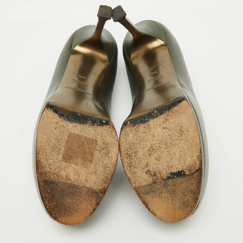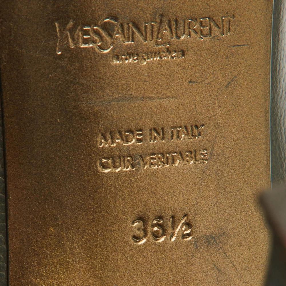 Yves Saint Laurent Olive Green Leather Tribtoo Platform Pumps EU 36.5