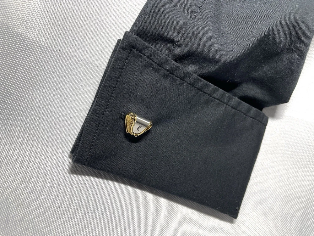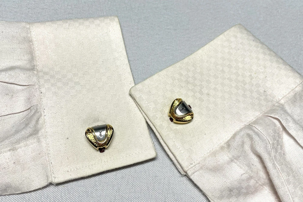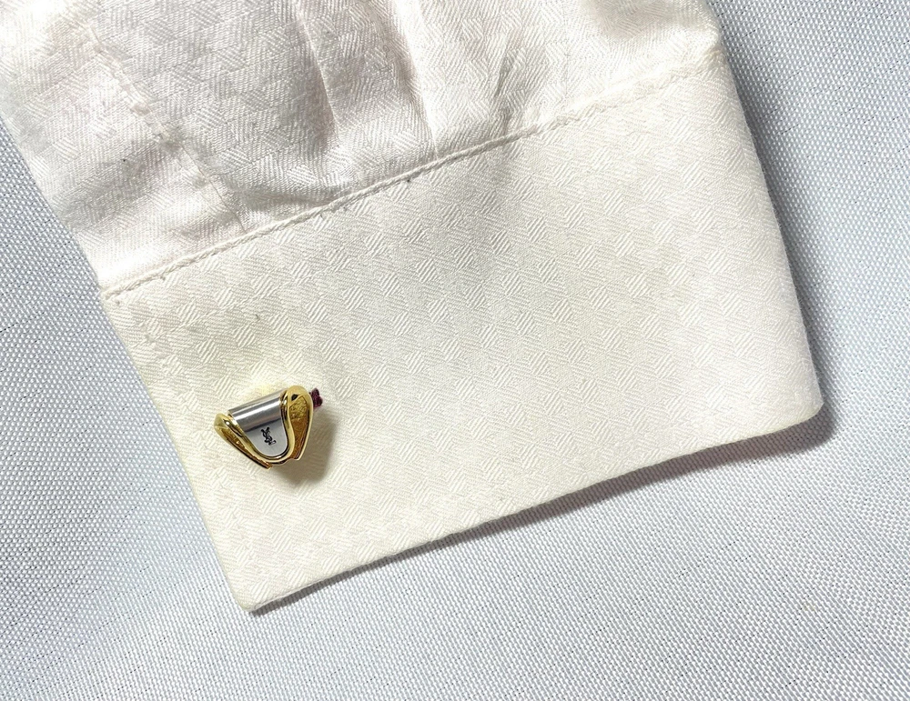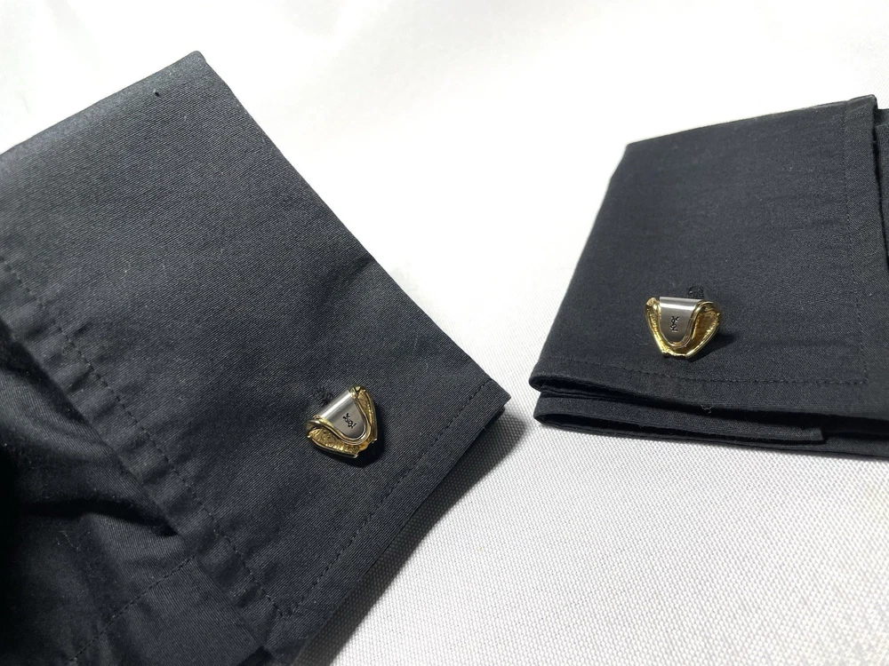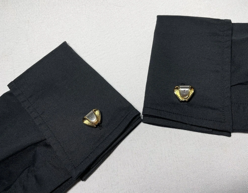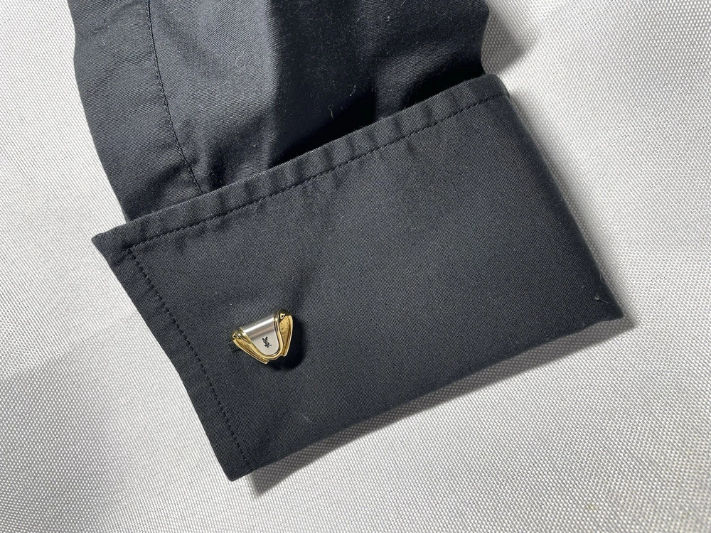 YSL Yves Saint Laurent gold black cufflinks Titanic pin brooch logo