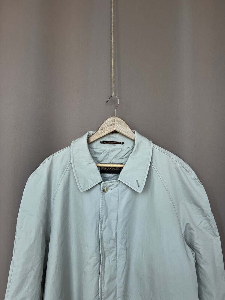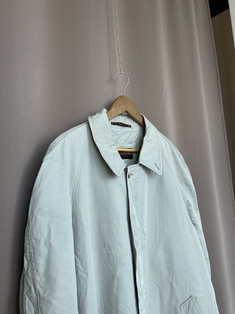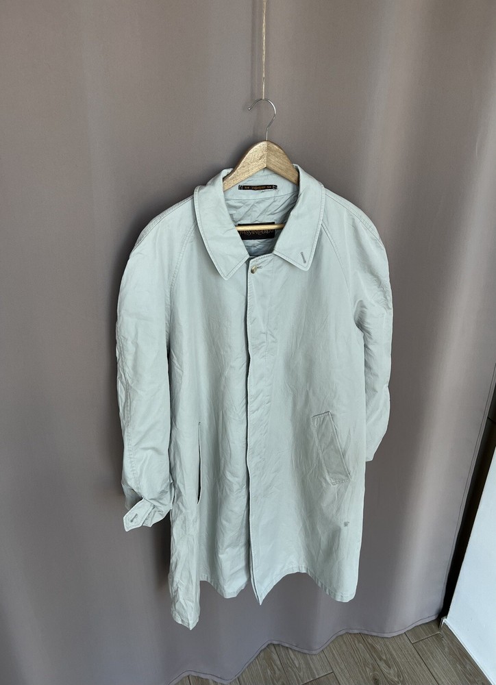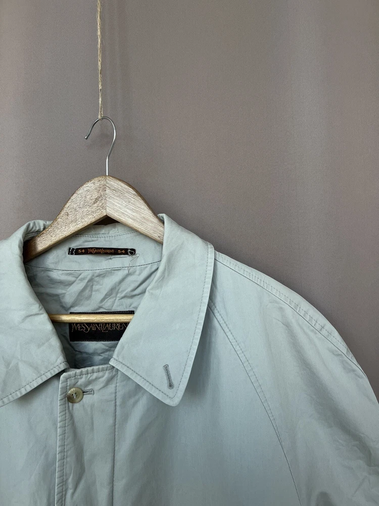 Yves Saint Laurent YSL Trench Mens Vintage Size 54 Gray Spring Coat Long Sleeve