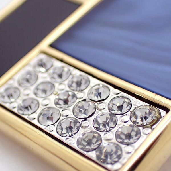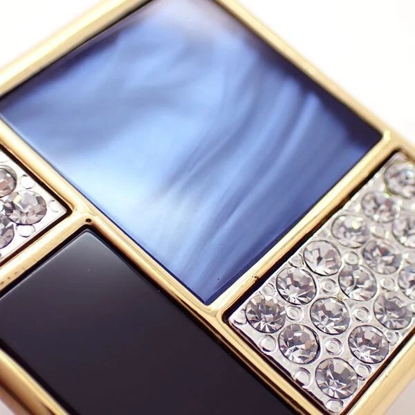 Yves Saint Laurent YSL Vintage Square Blue Black Rhinestone Brooch Pin with Original Box