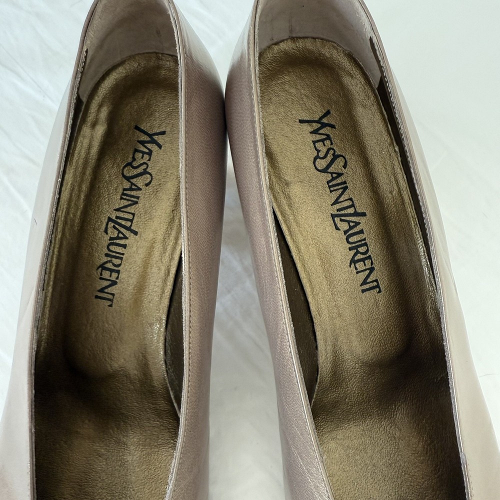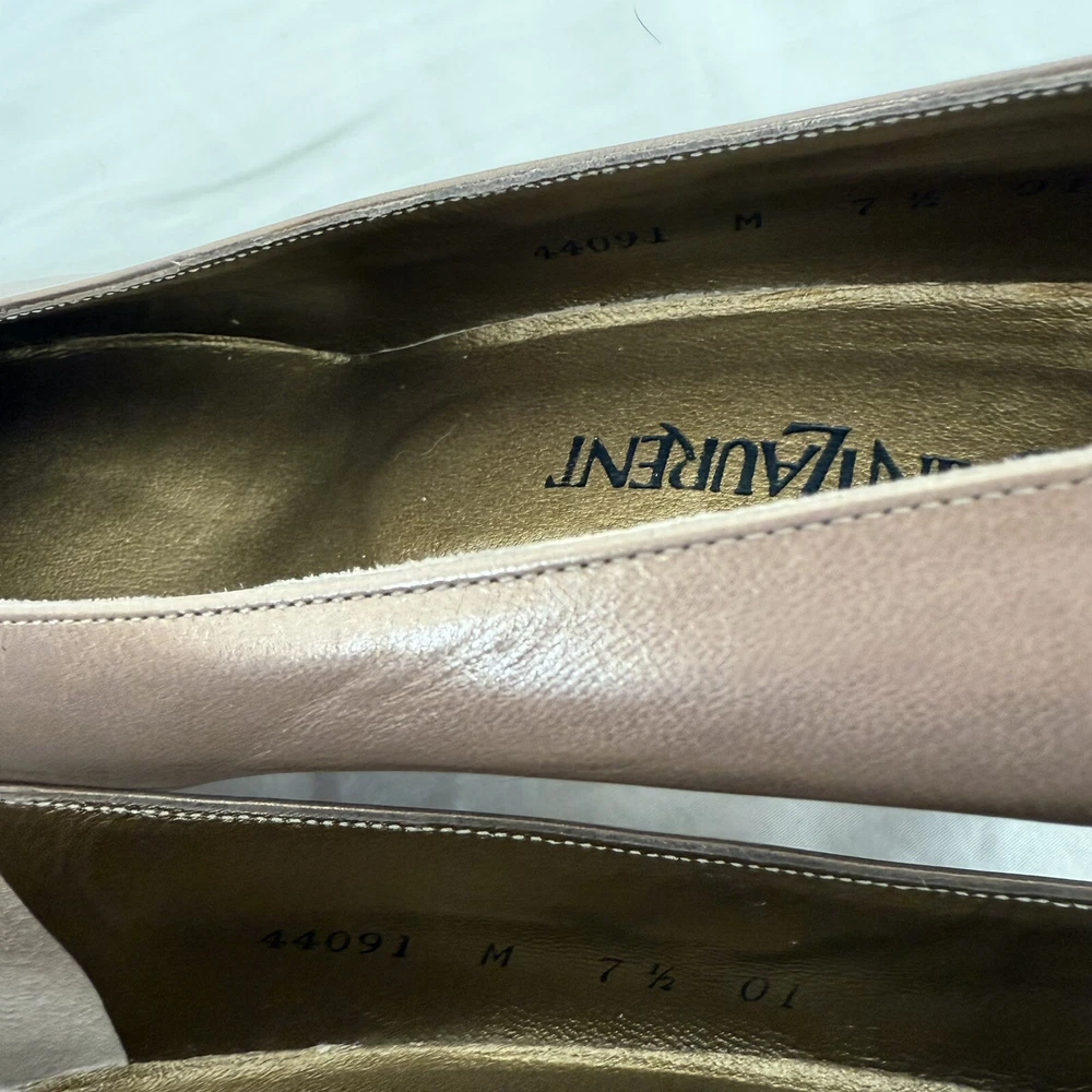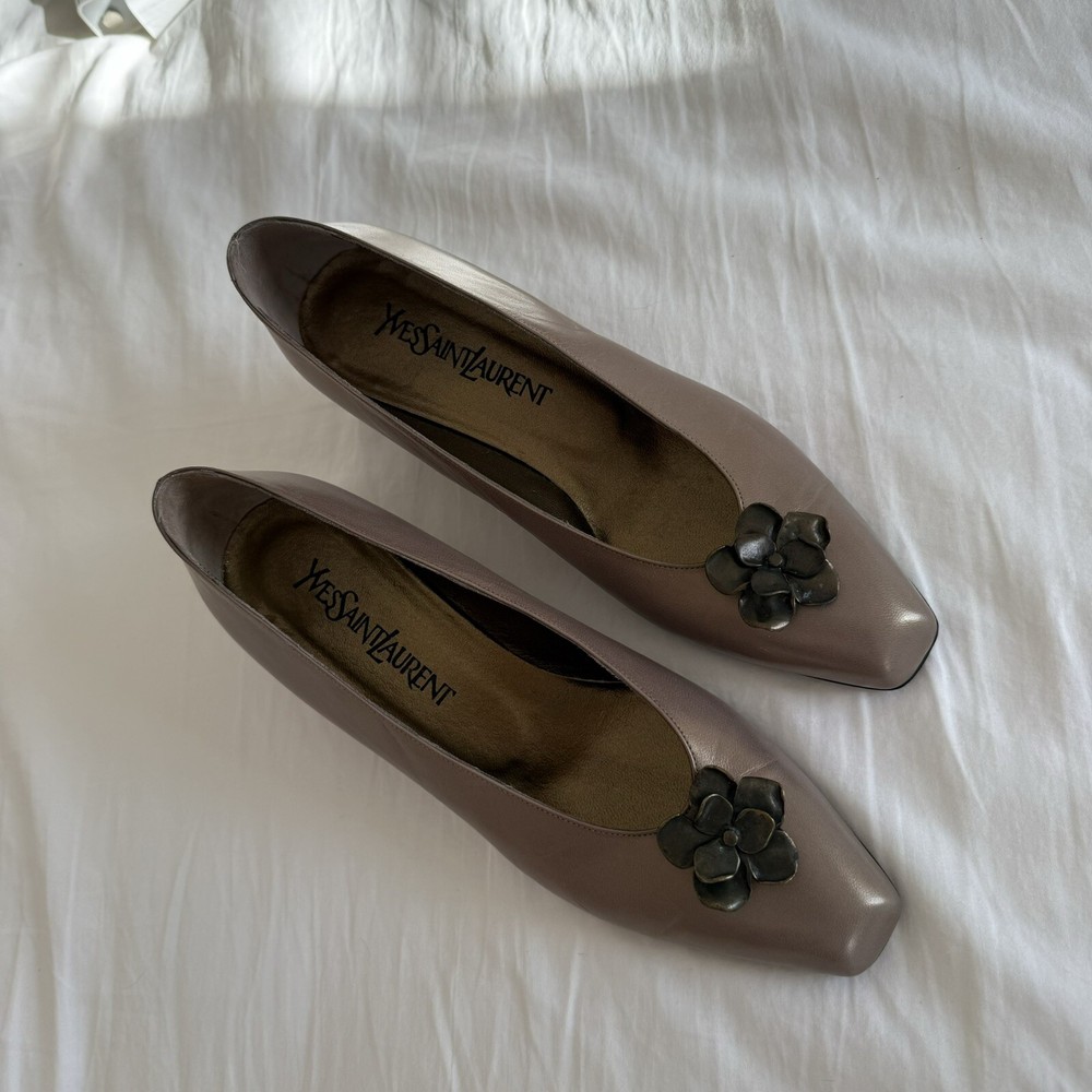 VINTAGE YVES SAINT LAURENT KITTEN HEELS CLOSED TOE. SIZE 7.5 MADE IN ITALY. FLOWER DETAIL. IN GOOD CONDITION!