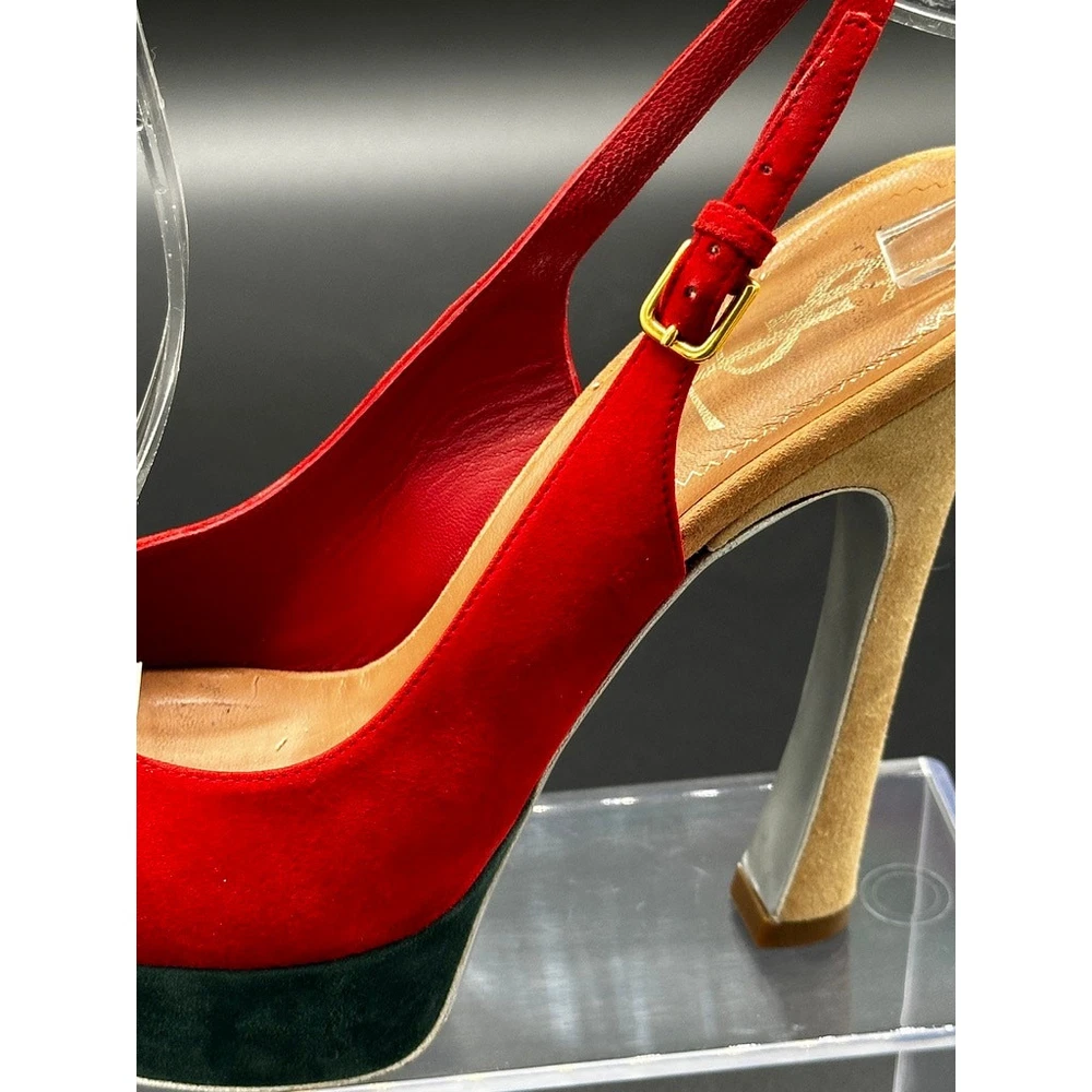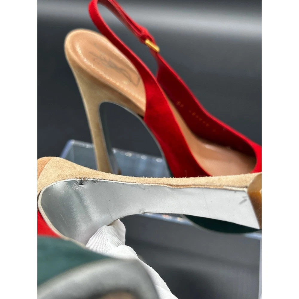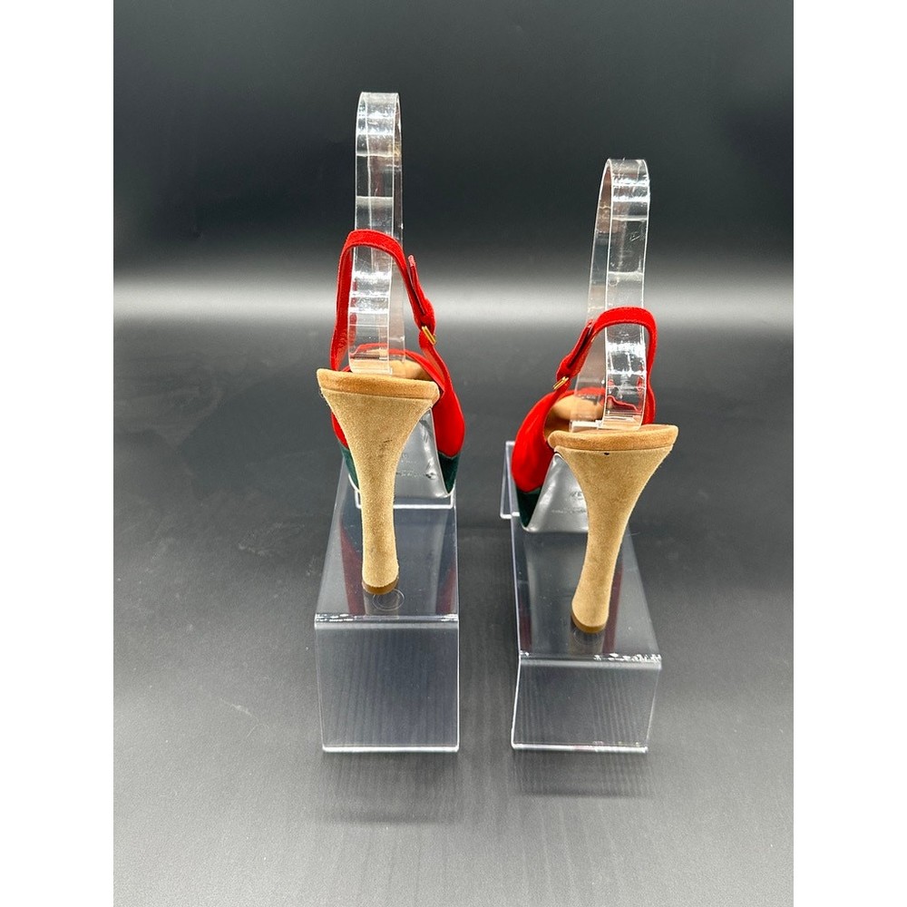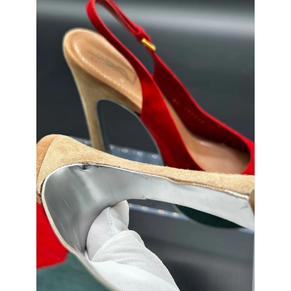 Multicolor red beige and blue suede peep toe platform pumps , sandals . In really good condition heel 5.5". Please see photos ands zoom in to see any call outs. No Box. Italy size 37
