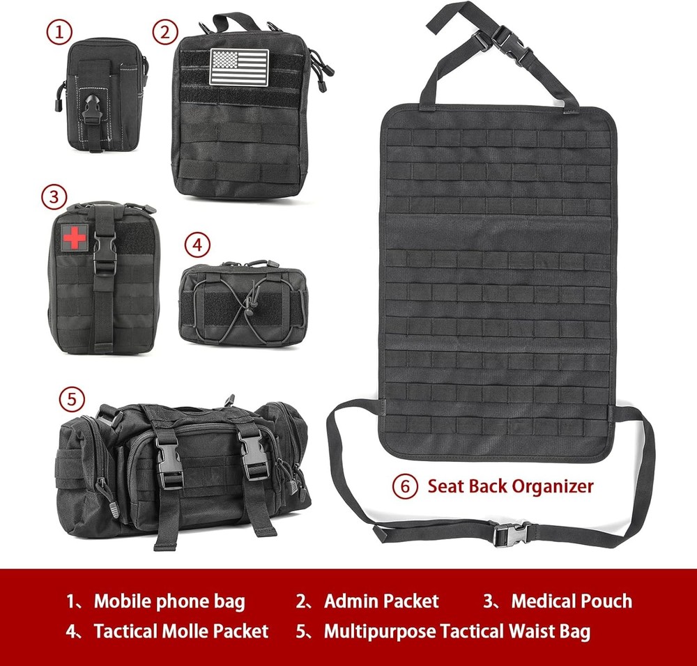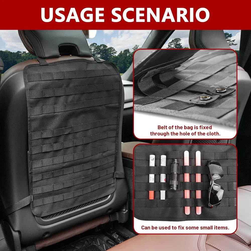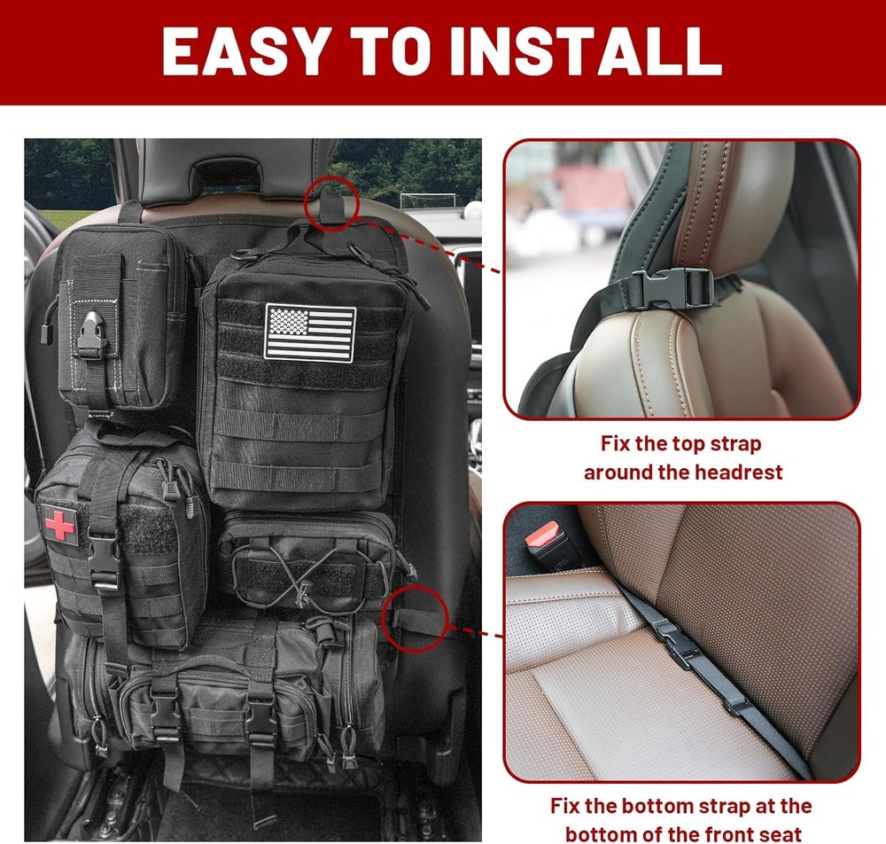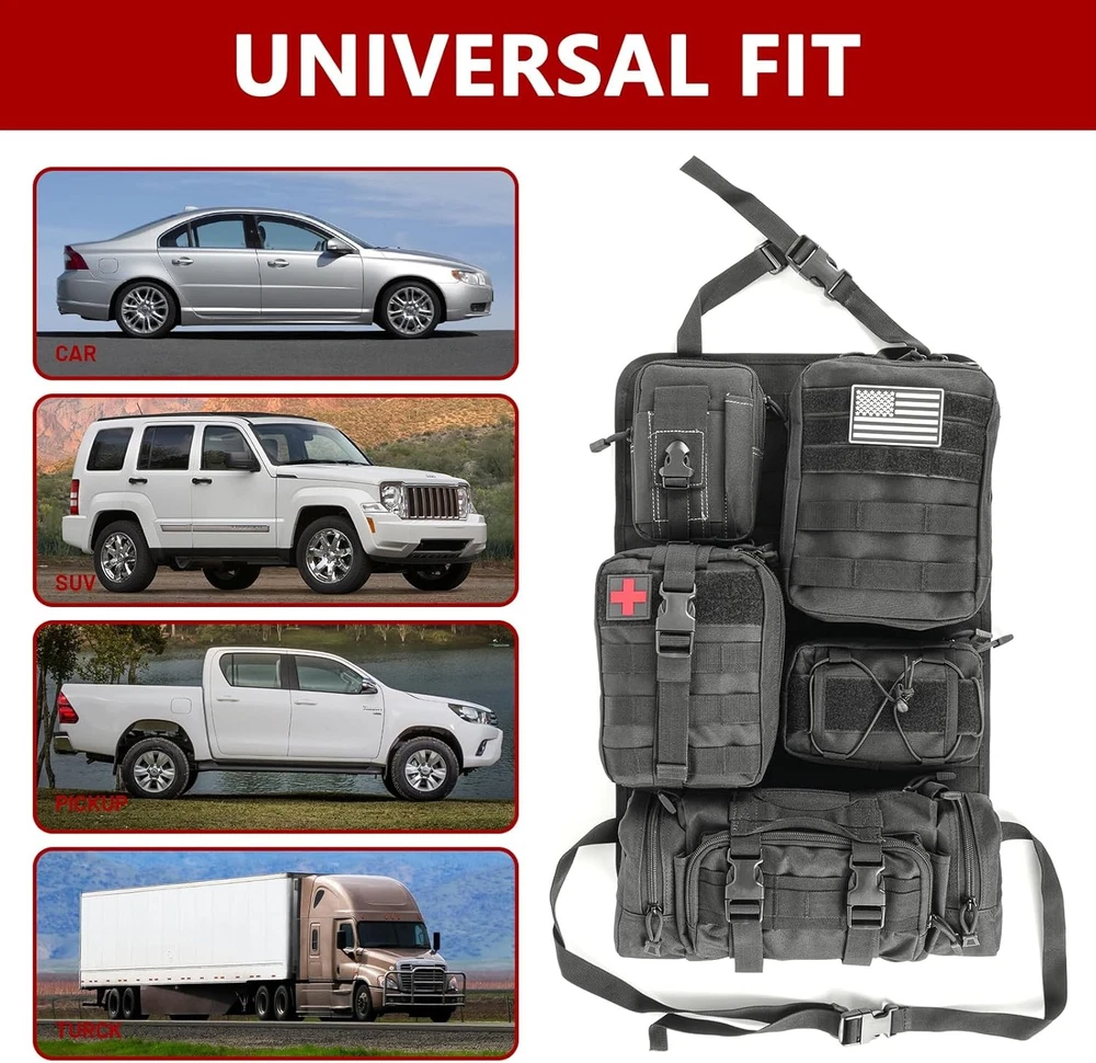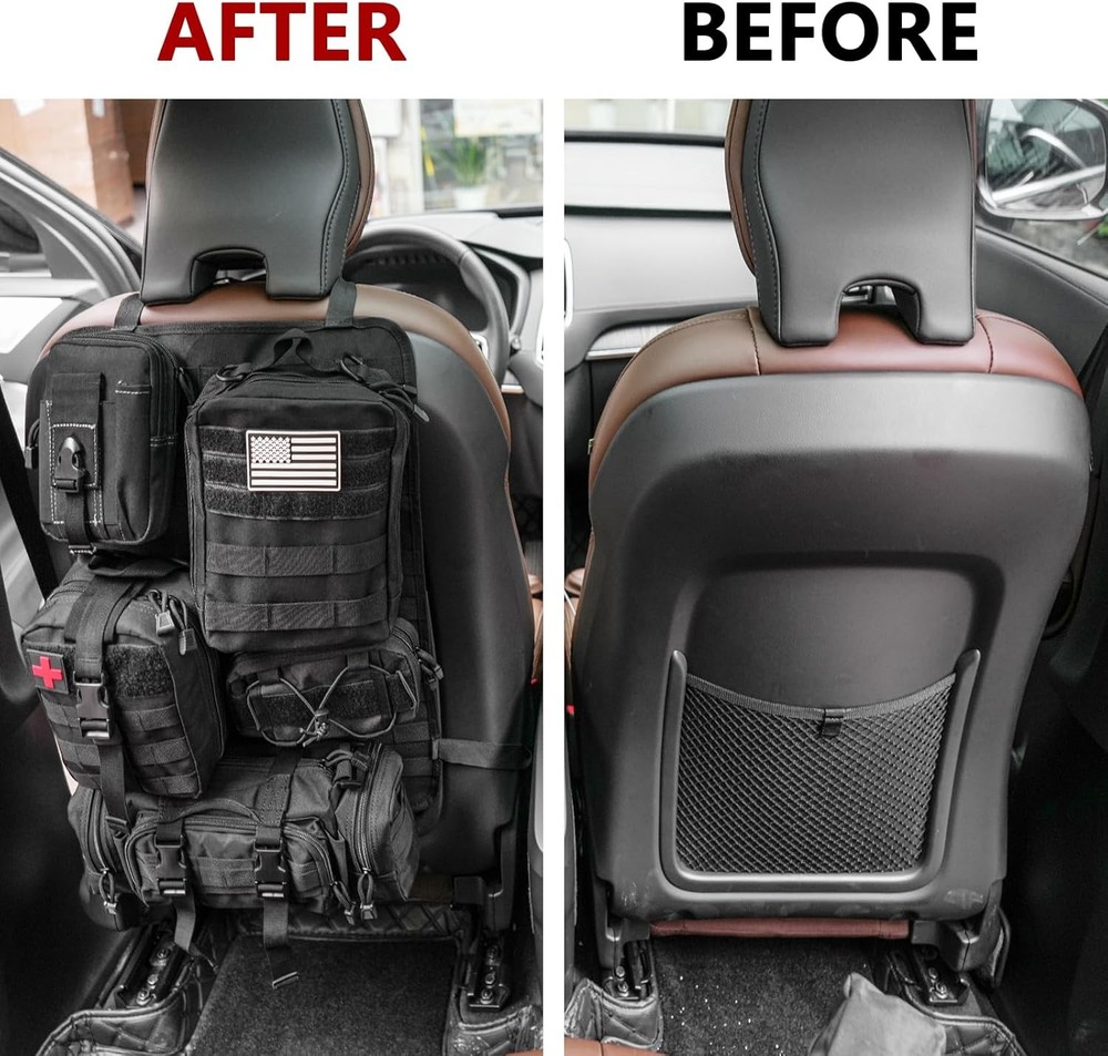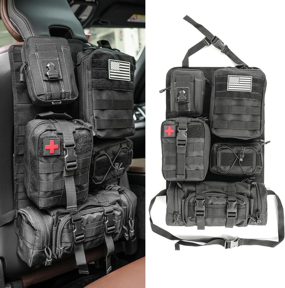 Z8 Tactical Car Seat Back Organizer with 5 Detachable Molle Pouches - Black/A Product Details Material: Fabric Color: Black/A Brand: Z8 Finish Type: Oil Rubbed Product Dimensions: 11.5"D x 8"W x 6.8"H Number of Compartments: 6 Number of Items: 1 Manufacturer: Z8 Item Weight: 2.88 pounds Country of Origin: China Item model number: 19931 Manufacturer Part Number: 19931 Material: Fabric Color: Black/A Brand: Z8 Finish Type: Oil Rubbed Product Dimensions: 11.5"D x 8"W x 6.8"H Number of Compartments: 6 Number of Items: 1 Manufacturer: Z8 ORGANIZER WITH 5 DETACHABLE MOLLE POUCHES - This tactical car seat back organizer features 5 types of pouches to efficiently store items of various sizes, including mobile phones, wallets, cards, maps, and more. Say goodbye to back seat clutter with this versatile storage solution. HIGH-QUALITY CONSTRUCTION - Made from durable nylon fabric, this tactical organizer is built to withstand wear and tear. It's tested for durability and water-resistance, providing long-lasting protection against scrapes and spills. EASY INSTALLATION AND VERSATILE USAGE - The tactical seat cover comes with an adjustable strap for easy installation around the car seat headrest and back. The adjustable belt can be disassembled and reinstalled if needed. Molle system pouches offer versatile attachment options, making it a great accessory kit for expanding storage space. MILITARY MOLLE SYSTEM - Design with 5 Molle bags on the back to help you store tactical gear & personal items and save space. Difference sizes of Molle bags help you classify your items so easily, so you can quickly find what you need. TACTICAL MUST HAVES - It is great tactical accessories and wonderful choice for men. Suitable for traveling, camping, office, storage of small tools.The molle tool pouch can be used as a vest pouch, pack pouch, tactical waist belt pouch, dump pouch, IFAK pouch, sub abdominal drop pouch, tool pouch etc according to your needs UNIVERSAL FIT FOR MOST VEHICLES - Fits a wide range of vehicles, including SUVs, trucks, MPVs, F150, JK, JL, and JLU models. It covers the back of front seats effectively and can be easily transferred between seats or vehicles. BEST SERVICE - Customer satisfaction is our top priority. If you have any questions, please feel free to contact us. We will solve your problems as soon as possible to ensure you the best shopping experience. 1