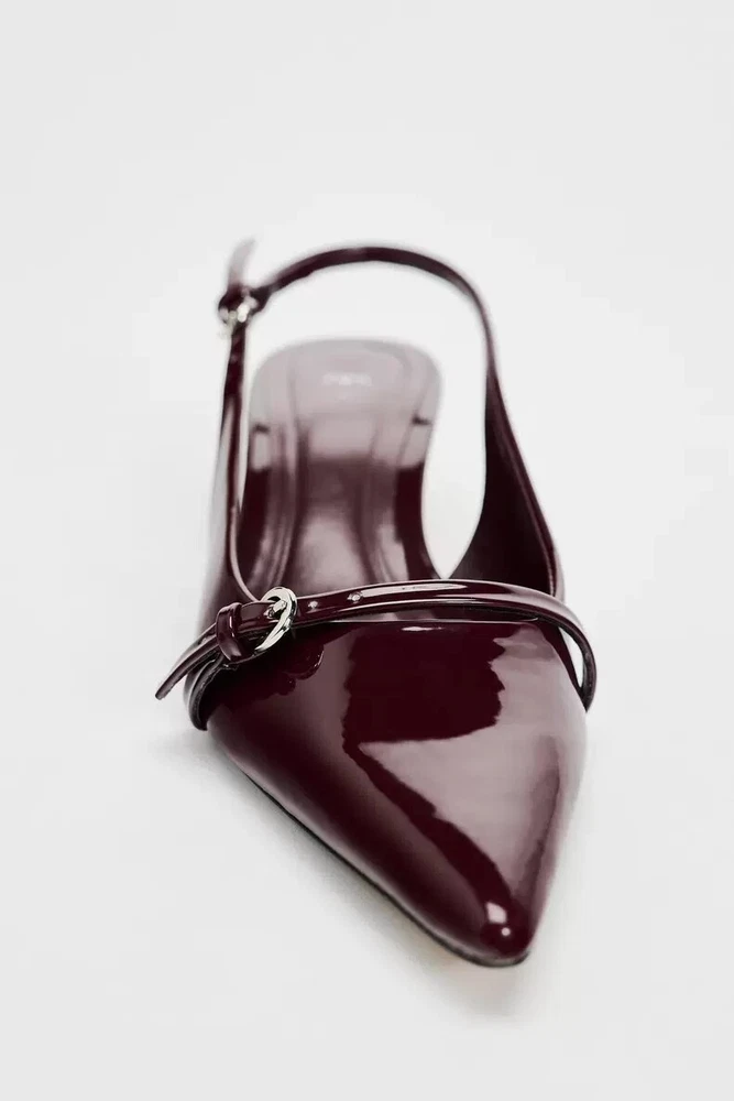 These heels are absolutely stunning! The red buckle adds such a chic pop of color, and they're surprisingly comfortable for all-day wear. Perfect for dressing up any outfit!
