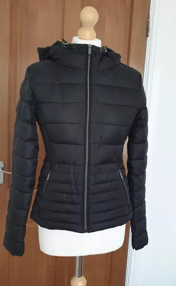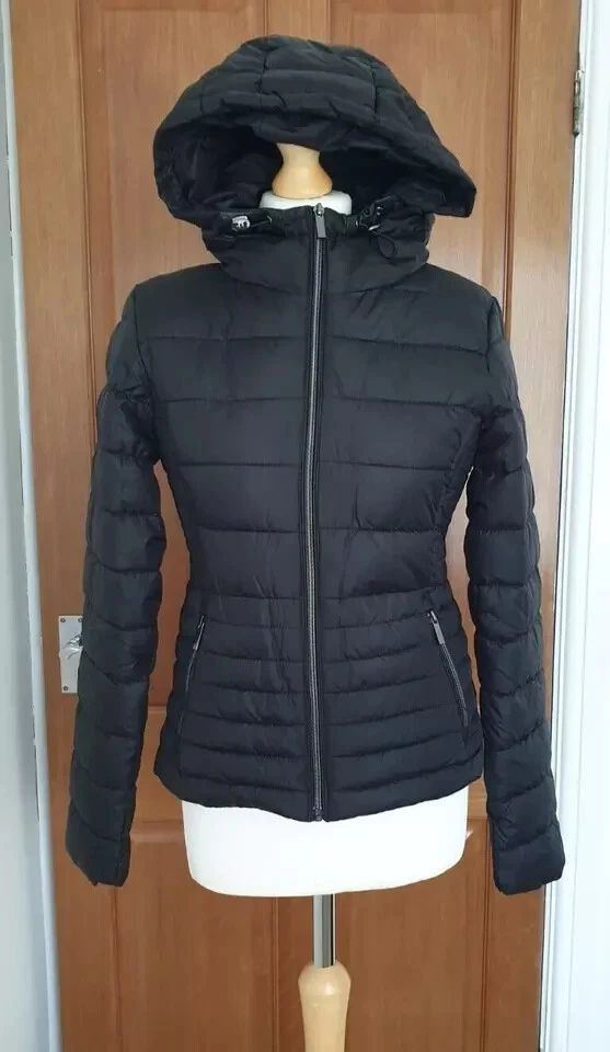 ZARA BLACK SORONA WATER REPELLENT LIGHT WEIGHTJACKET COAT BNWT SIZE XS Fitted jacket featuring a high collar with adjustable drawstring hood and long sleeves. Front zip pockets. Zip-up front. BLACK | 5071/222 100% polyester LINING 100% polyester FILLING 100% polyester Approximant measurements are as below; Armpit to pit approx. 18""Shoulder approx.15"Sleeve approx.25"Length approx. 22.5" Waist Approx. 15" Thank you for looking SORRY, NO RETURN