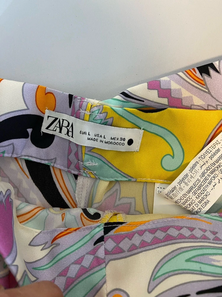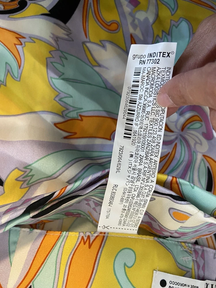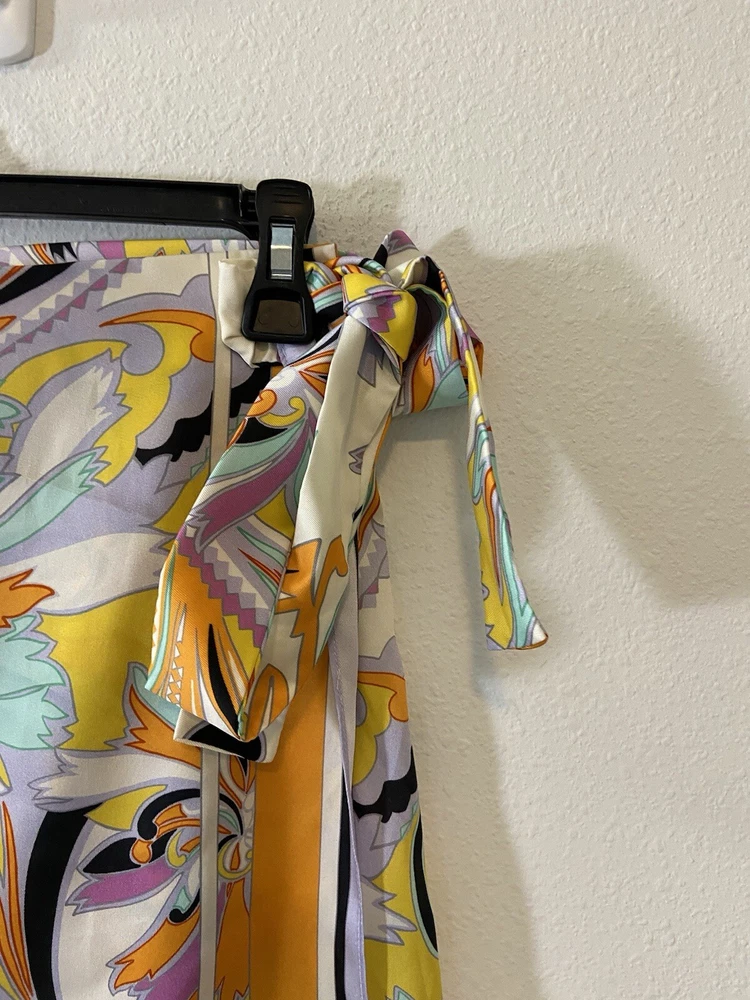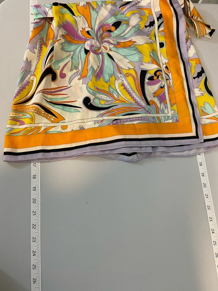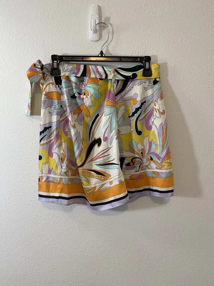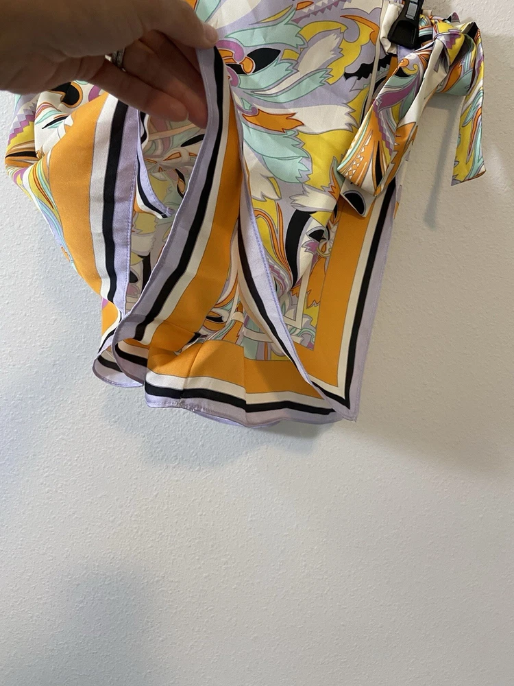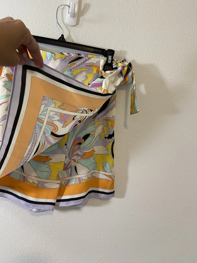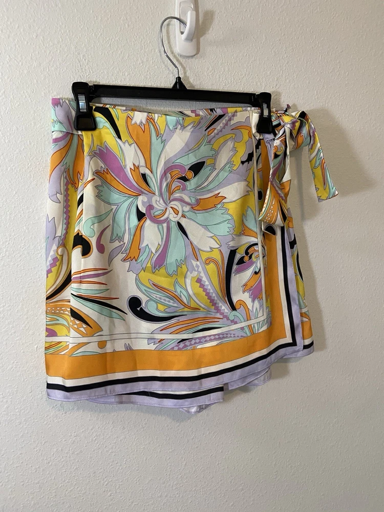 ZARA Floral Scarf Print Skirt Large Skort Shorts Multicolor Womens Belted Satin