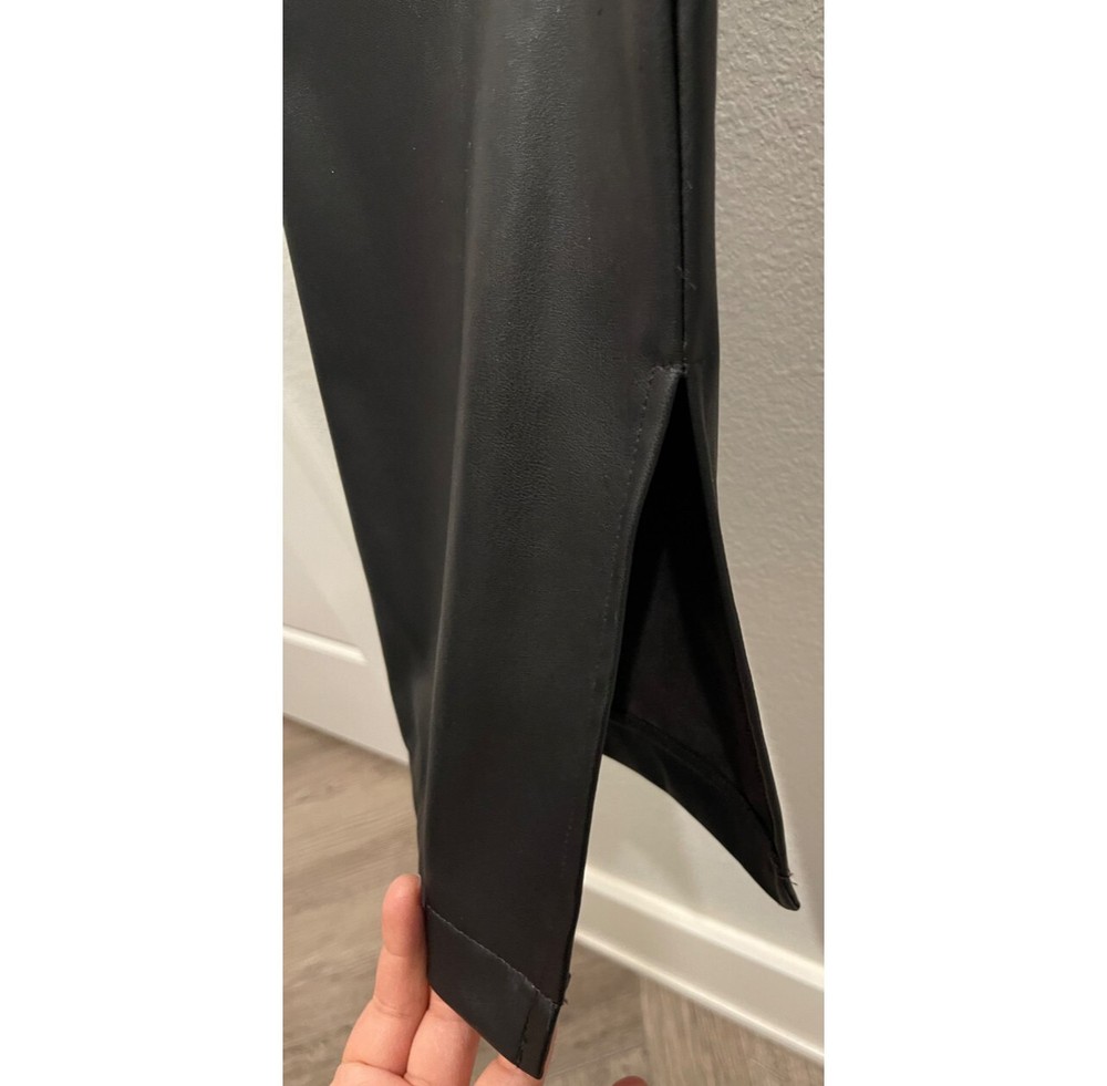 ZARA High Waist Black Faux Leather Open Leg Pants. Size 6 NEW WITHOUT TAGS Measurements aprox: Waist 13.5" Rise 11.5" Inseam 32.5" Length 44" 100% POLYURETHANE