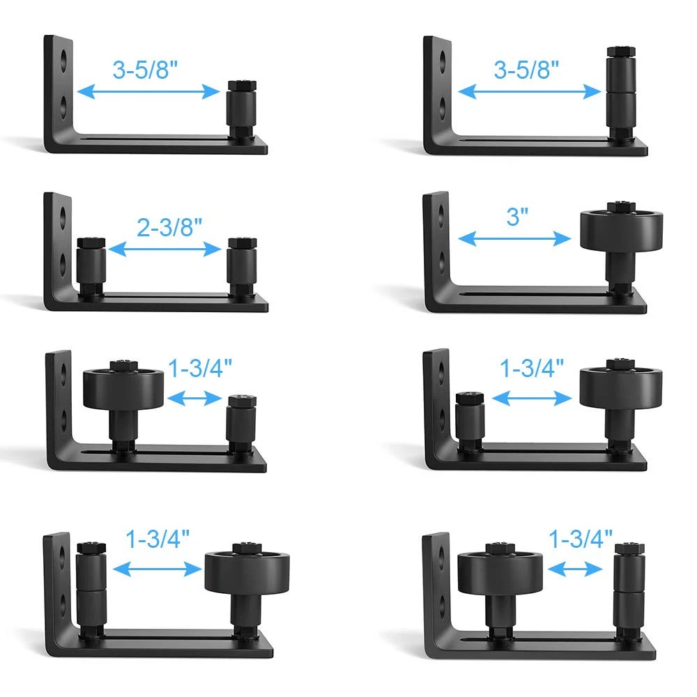 WHAT WE USE: Our barn door floor guide is made of solid carbon steel with a fine black powder-coated surface for anti-corrosion, rust, scratch, and long-last. The roller is made of excellent POM nylon, allowing you to enjoy every quiet and smooth slide FUNCTIONAL DESIGN: 8 setup options combined in 1 barn door floor guide, can accommodate different thickness doors flexibly, thickest to 3-3/8 inch, also good with thinner doors. The adjustable roller allows our barn door guide to fit almost any barn door AETHETIC LOOK: Our barn door floor guide fits for ungrooved doors, no need to drill holes, perfect for carpeted or tiled floor. This barn door floor guide has a flat bottom that is fully flush with floor, with no gaps between them so won't ruin your floor WIDE APPLICATION: Our barn door floor guide can be widely used for bedrooms, cabinets, windows, closets, farm doors, and more, also not limited to interior and exterior use. This barn door floor guide will be your barn door hardware kit's best helper WARM TIPS: Our barn door floor guide will come with user-friendly instructions and all needed hardware. 2 sizes of wrenches help you adjust the small and big rollers. Any questions or concerns, our customer service team is more than happy to assist you