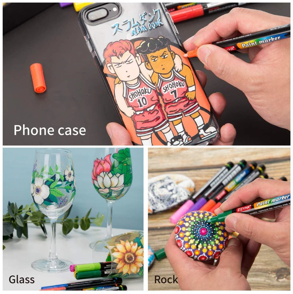 ZEYAR is a professional art&crafts artwork manufacturer The world of science is full of many beautiful colors! Some of the colors in our world cannot be seen with just your eyes, but we are trying to give you more colors for your options. Vibrant 32 colors: This size pen is ideal for the detailing and outlining you're likely to do. Made with Water-Based ink and Acrylic material tips, which can help create a colorful world, give you more options to improve your imagination. Excellent quality: Advanced valve-action structure inside the marker. Non-toxic, xylene free and safe to use. Conforms to ASTM D-4236 certificate. Nearly any surface for drawing: Suitable for rocks, canvas, paper, wood, metal, glass, plastic, leather and so on. No Fuss, No Mess & No Worries Recap after use and no food contact. USA Brand ZEYAR. SHAKE WELL BEFORE USE, GREAT IMPROVEMENT: Larger Capacity, Longer Writing Distance, Easier Marker Shaking, More Comfortable Holding Valve Mechanism: Great control of ink and gas, High-Technology, Archival Quality 32 vibrant colors: Basic Colors: Black, White, Blue, Red, Yellow, Dark Green, Light Green, Pink, Violet, Orange, Brown, Grey, Light Brown, Chocolate; Pastel Colors: Pastel Yellow, Pastel Pink, Pastel Blue, Pastel Violet, Pastel Green; Metallic Colors: Gold, Silver, Metal Blue, Metal Violet, Metal Red, Metal Green, Metal Pink, Metal Turquoise, Metal orange, Metal dark grey, Metal bronze, Metal brown, Metal dark green Ink properties: Waterproof and Sunproof, Fade-resistant after totally dry, quick-drying, Environmental friendly. Conforms to ASTM D-4236 certificate, non-toxic and acid free. But don't swallow it and No food contact Smooth Writing: Writes on nearly all smooth surfaces with your imagination and creation, allowing you to easily write on paper, stone, rubber, ceramics, wood, glass, plastic! Not suitable for porous and rough surfaces
