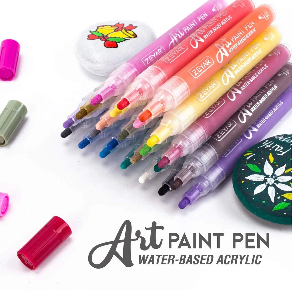 ZEYAR is a professional art&crafts artwork manufacturer The world of science is full of many beautiful colors! Some of the colors in our world cannot be seen with just your eyes, but we are trying to give you more colors for your options. Vibrant 18 colors: This size pen is ideal for the detailing and outlining you're likely to do. Made with Water-Based ink and Acrylic material tips, which can help create a colorful world, give you more options to improve your imagination. Excellent quality: Advanced valve-action structure inside the marker. Non-toxic, xylene free and safe to use. Conforms to ASTM D-4236 certificate. Nearly any surface for drawing: Suitable for rocks, canvas, paper, wood, metal, glass, plastic, leather and so on. No Fuss, No Mess & No Worries Recap after use and no food contact. USA Brand ZEYAR. Valve Mechanism: Great control of ink and gas, High-Technology, Archival Quality, Safe for Use by Children Multi-Colors: 24 vibrant colors: Black, Smoke Grey, Brown, White, Bright Blue, Red, Wine Red, Light Magenta, Skin Pink, Orange, Yellow, Green, Olive Green, Light Green, Pastel Blue, Blue, Violet, Pastel Pink, Pink, Pastel Yellow, Pastel Green, Pastel Violet, Pastel Brown, Gold, Silver Ink made in Italy: Conforms to ASTM D-4236 certificate, non-toxic and acid free. But don't swallow it and No food contact Quick-drying, erasable with hard scrape and soluble in water; suitable for repeated drawings on the same surface Smooth Writing: Writes on nearly any surface with your imagination and creation, allowing you to easily write on paper, stone, rubber, ceramics, wood, canvas, glass and plastic! WE CARE ABOUT ALL CUSTOMERS: Here at ZEYAR, we are professional markers manufacturer with sophisticated R&D, Quality control processes to ensure all our products maintain great quality. For us, drawing is an expression of the human feelings and experience. That’s why we work to make Our markers supplies accessible to all people