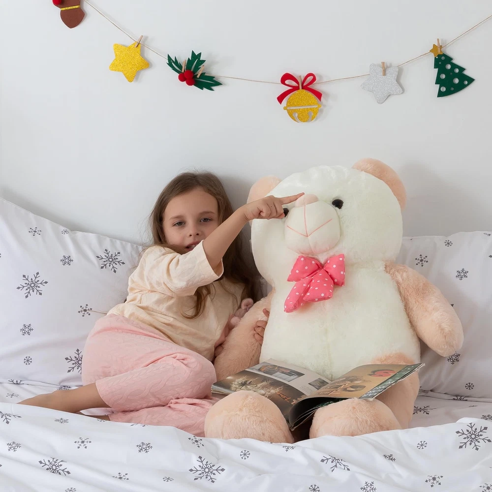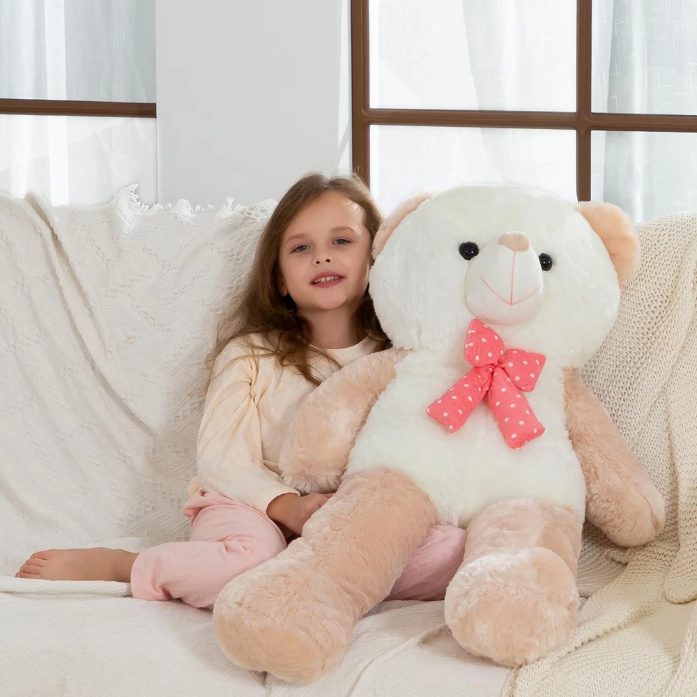ZGXIONG Giant Teddy Bear Large Stuffed Animals 3 Feet Huge Plushies Big Plush Toy for Girlfriend Kids Birthday Gifts 36 Inch Apricot CPC Certification Material: Giant teddy bear valentines day stuffed animals is made of skin-friendly plush fabric + enough 100% PP cotton. Natural eco-friendly, safe and comfy for children's skin Teddy Bears Design: Large stuffed animals 3 feet big teddy bear plushies modeling: 18 x 12 x 36 inches, the huge body of the large teddy bear is very popular with children Give It Away: Giant stuffed animal large teddy bear for all ages, huge plushies teddy bear can be given to girlfriends, children, women, and friends during birthdays, Halloween, and Christmas holidays Beautiful Decoration: This big stuffed bear, whether in the bedroom, living room or office, is all great big bear stuffed animal decor to make your room even warmer Note: After opening the package, please rub, stretch, pat big plushies, then giant plush toy big stuffed animals will recover full within 2-3 days. Pleated fabrics can be restored better with an iron