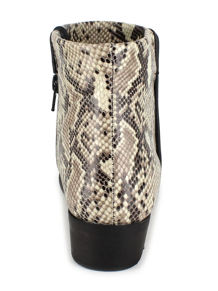 Theme: Snake Features: Comfort Shoe Shaft Style: Ankle Season: Fall, Spring, Summer, Winter Heel Style: Block Closure: Zip Type: Boot Shoe Width: Standard Outsole Material: Rubber UPC: 0883668042243 GTIN: 0883668042243 Insole Material: Leather Calf Width: Regular Lining Material: Leather Style: Bootie gtin13: 0883668042243 Occasion: Casual Brand: Artisan Upper Material: Leather Toe Shape: Almond Toe Color: Beige