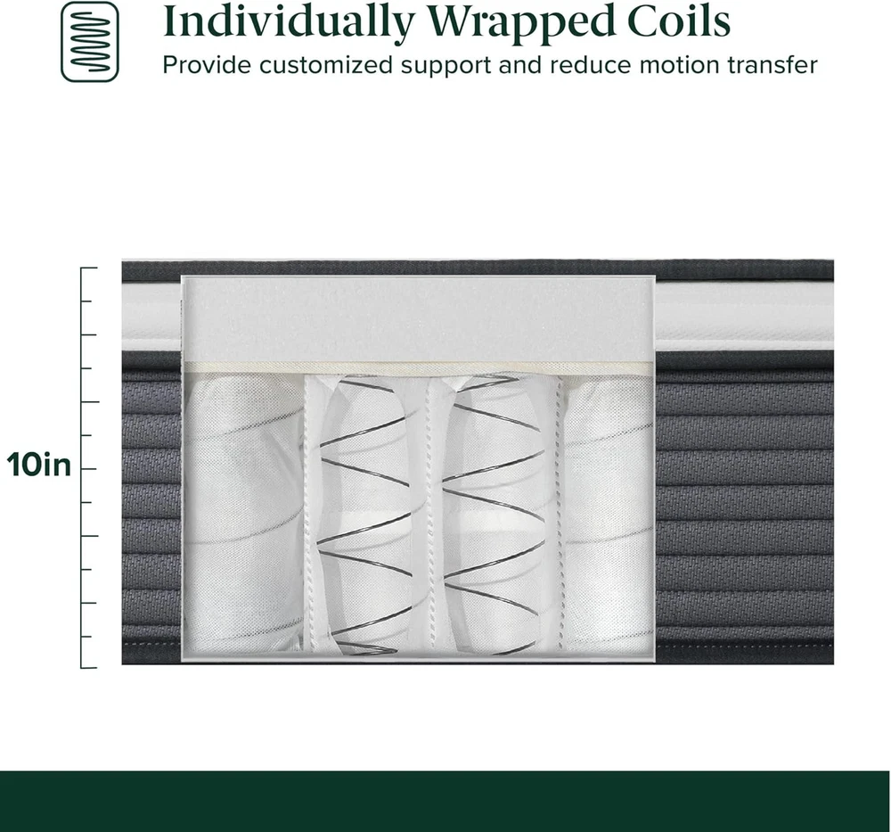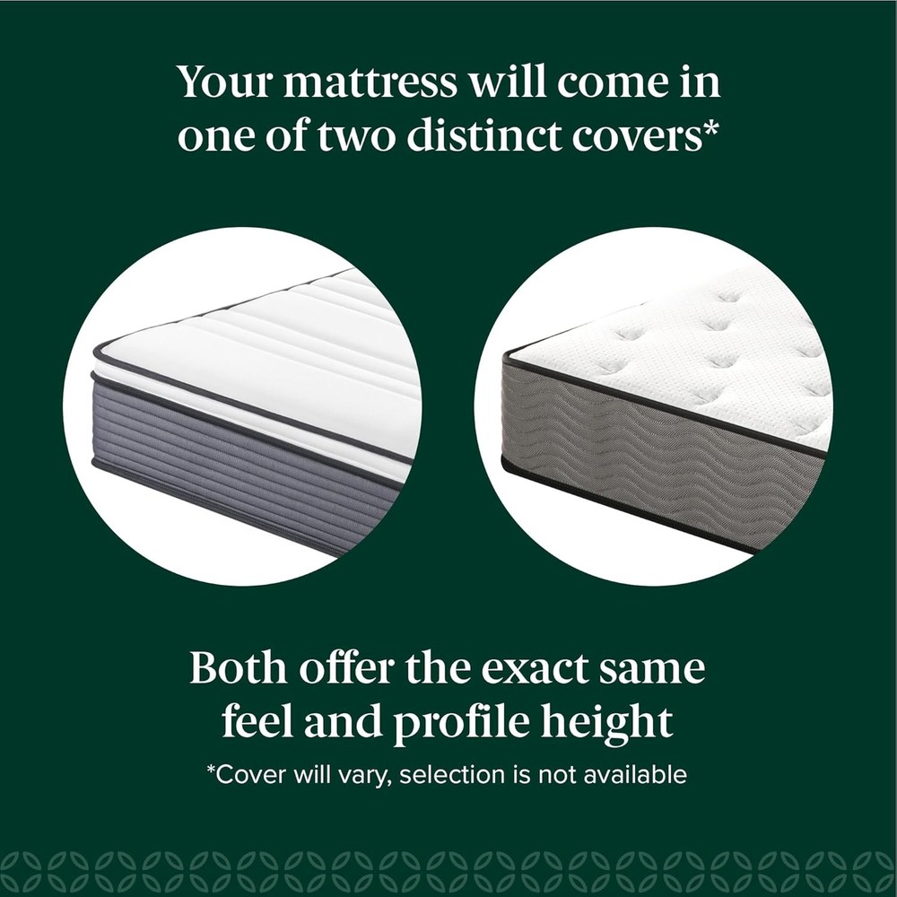 ZINUS 10 Inch True Support Hybrid Mattress [New Version], Queen, White Product Details Product Dimensions: 80 x 60 x 10 inches Item Weight: 69.2 pounds Manufacturer: Zinus Item model number: ZU-MSSB1VZI-10Q Thickness: 10 Inches Refill: Foam Care instructions: Spot Clean Only Batteries required: No Included Components: Mattress Brand: ZINUS Size: Queen Product Dimensions: 80"L x 60"W x 10"Th Top Style: Euro Top Cover Material: Microfiber Number of Layers: 3 Fill Material: Foam Weight Limit: 500 Pounds Special Feature: Breathable, Low Motion Transfer Color: White Item WeightItem Firmness Description: 69.2 PoundsMedium Age Range (Description)Construction Type: AdultPocket Spring CUSTOM COMFORT – Individually wrapped coils topped with conforming layers of not-too-soft comfort foam provide motion isolation and the perfect level of pressure relief for you as you rest MADE TO LAST – Durably designed to last you for years to come; twin mattress supports a maximum weight of 250 lbs, while all other sizes can support up to 500 lbs TWO COVERS, SAME FEEL - Your mattress will arrive with one of the two distinct covers shown above. Regardless of which you receive, rest assured the mattress itself delivers the same perfectly supportive, firm feel and profile height for a consistently blissful sleep experience CERTIFIED SAFE MATERIALS – Crafted from high-quality CertiPUR-US certified foam and wrapped with an OEKO-TEX certified mattress cover that ensure no use of harmful chemicals for safer, healthier sleep This medium-firm hybrid mattress provides responsive support and comfort. Your mattress will arrive with one of two different covers, rest assured they both provide the same supportive feel. The True Support Hybrid Mattress features wrapped coils that adapt to your body shape and minimize movement and disturbance from a restless partner. A comfort foam layer on top delivers pressure relief without the "sink-in" feeling. Made with Certi-PUR US® certified foams, this mattress ensures top quality and no harmful chemicals. It ships to you in one convenient box and includes a 10-year limited warranty.
