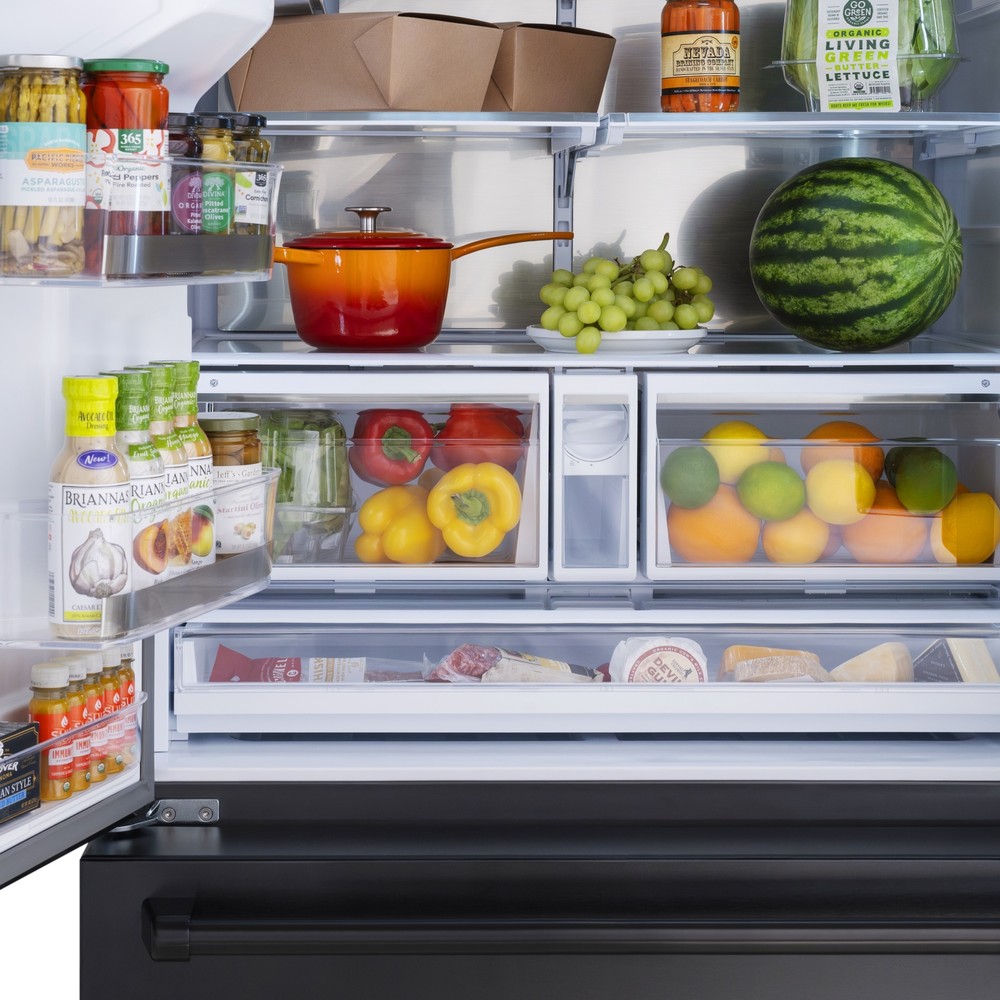 HUGE SAVINGS ON OPEN BOX ITEMS.... ALL OPEN BOX ITEMS HAVE BEEN THOROUGHLY INSPECTED. GREEN LABELED Open box items ARE NEW AND will have all the hardware included AND may have been repackaged. MOST ITEMS SHOW NO DAMAGES WHATSOEVER HOWEVER, They could have light scuffing or small dents that will likely not be visible once installed as they are on the back or sides of the units. THIS IS NOT A GUARANTEE BUT LIKELY. All sales are final unless the item received is grossly misrepresented. If there are any issues with your item please reach out immediately. You are purchasing a NEW open box item to save money. It will be AN OPEN BOX ITEM AND will be a guaranteed value. If you would like actual photos of the item being shipped please send a message. Items cannot be held until purchased PRODUCT DESCRIPTION HUGE SAVINGS ON OPEN BOX ITEMS.... ALL OPEN BOX ITEMS HAVE BEEN THOROUGHLY INSPECTED. GREEN LABELED Open box items ARE NEW AND will have all the hardware included AND may have been repackaged. MOST ITEMS SHOW NO DAMAGES WHATSOEVER HOWEVER, They could have light scuffing or small dents that will likely not be visible once installed as they are on the back or sides of the units. THIS IS NOT A GUARANTEE BUT LIKELY. All sales are final unless the item received is grossly misrepresented. If there are any issues with your item please reach out immediately. You are purchasing a NEW open box item to save money. It will be AN OPEN BOX ITEM AND will be a guaranteed value. If you would like actual photos of the item being shipped please send a message. Items cannot be held until purchased Luxury isn’t meant to be desired — it’s meant to be attainable. The ZLINE 36 in. 28.9 cu. ft. Standard-Depth French Door External Water Dispenser Refrigerator with Dual Ice Maker in Black Stainless Steel (RSM-W-36-BS) features a state-of-the-art cooling system, a professional built-in water and ice dispenser, and an expansive interior designed to store more items than ever before. Elevate your kitchen to a modern, luxurious style while preserving more space for what matters. This refrigerator includes the following features: Standard-Depth Design - Enhance your home with a standard-depth refrigerator that complements any kitchen design with increased interior capacity Black Stainless Finish - Minimize cleaning with ZLINE’s fingerprint-resistant sleek and stunning black stainless steel finish Spacious Capacity - Easily organize items with an 18.5 cu. ft. refrigeration compartment and 10.4 cu. ft. freezer compartment — totaling 28.9 cu. ft. of storage capability External Water and Ice Dispenser - Deliver fresh filtered water and crushed or cubed ice from a sleek in-door dispenser that fits containers up to 10 in. tall Dual Ice Makers - Produce nearly 7 pounds of ice daily — 4 pounds in the primary in-door ice maker and 2.8 pounds in the secondary ice maker inside the freezer Super Cool and Super Freeze Modes - Save time and quickly chill food with unique functions that automatically set the fridge temperature to 34°F and freezer to -7°F Digital LED Display - Adjust temperatures, engage a child lock, and navigate multiple menu items with an ADA-accessible LED control panel located on the refrigerator door Spill-Resistant Glass Shelves - Effortlessly store items in the refrigerator on 4 spill-resistant adjustable glass shelves, 1 of which is foldable to allow more flexibility Dual Crisper Drawers - Enjoy best-in-class freshness for fruits and vegetables with a pair of half-width humidity-controlled crisper drawers Full-Width Pantry Drawer - A full-width pantry drawer provides substantial storage for produce, meats, and other food items you want to keep fresher longer 8 LED Lights - Fully illuminate your appliance with 5 bright built-in LED lights in the refrigerator, 1 in the freezer, and 2 more in the water and ice dispenser Dual Cooling - Separate refrigerator and freezer systems provide efficient cooling while ensuring air and odors are not mixed between compartments Adjustable Door Bins - Store condiments, beverages, and other taller items inside 8 durable plastic bins, with 4 on each door Full-Extension Freezer Drawers - Comfortably store frozen items of multiple shapes and sizes inside 2 spacious full-width freezer drawers Adjustable Temperatures - Create the perfect cooling environment with fridge temperatures ranging from 34°F to 44°F and freezer temperatures from -7°F to 7°F Water Filter - A simple-to-replace water filter is located at the bottom of the refrigerator compartment to accommodate ADA access Sabbath Mode - A convenient Sabbath Mode conserves energy by deactivating interior lights and control panel functions with doors open Quiet Noise Level - Enjoy peace of mind day or night with an ultra-low noise rating of 43 decibels ENERGY STAR® Rated - Superior insulation coupled with a top-tier sealed cooling system saves you money while maximizing energy efficiency Manufacturer Warranty - 1-year parts and labor, and a 5-year parts-only warranty on the sealed cooling system, including compressor, evaporator coil, condenser coil, and filter drier Dimensions: 35.75 in. W x 34 in. D x 69.88 in. H Cutout Dimensions: 37.25 in. W x 31.5 in. D x 71.88 H Depth with Handles: 36.75 in. Depth with Door Open: 48.13 in. Total Capacity: 28.9 cu. ft Fridge Capacity: 18.54 cu. ft Freezer Capacity: 10.35 cu. ft Ice Maker: Yes Ice Maker Types: Dual Automatic Ice Maker Ice Amount Per Day: 6.83 lbs Water Dispenser: Yes Flow rate for Water Dispenser: .4 GPM Fridge Lights: 5 Energy Star: Yes Energy Consumption (kWh/year) 743 Voltage: 120V/60Hz Amps: 3 Noise Level: 43 Decibels Humidity-Controlled Crispers: 2 Freezer Drawer Bins: 2- Pull Out Drawers Door Shelves: 4 Number of Fridge Shelves: 4 Mount Type: Freestanding Depth Type: Standard Depth Certifications: UL Listed, ENERGY STAR Certified Material: BLACK Stainless Steel Warranty 1 year parts and service and 5 year parts on sealed system, including compressor, evapora
