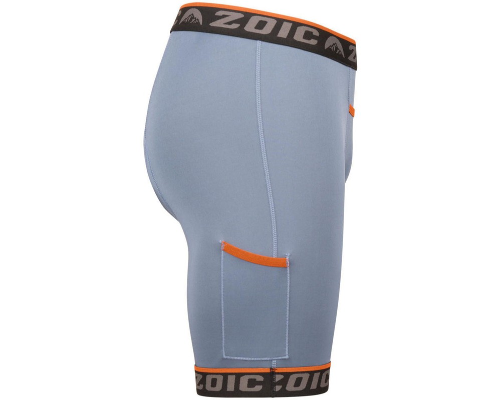 The ZOIC Premium Liner features a super soft Italian-made chamois, Veloce from Elastic Interface, constructed of multi-level ergonomic foam with 4-way stretch and advanced moisture-wicking properties. ZOIC's revolutionary Quick Release Fly with its horizontal design allows you to stop, drop, and roll whenever nature calls. A Quick Draw Pocket provides a handy place to stash a bar or gel for fast refueling, perfect when you want to streamline your profile for shorter rides or race day optimization. Wear ZOIC padded cycling liners to make any short a bike short. These inner shorts provide cushion and comfort for bike rides of any duration. ZOIC cycling liners are categorized by ride time, based upon thickness of the chamois pad and how soft or firm the foam is, to help you choose the liner you need. The Premium Liner has soft cushioning and is recommended for rides lasting 3 hours. Features: Spandex fabric provides stretch, breathability, and wicking Revolutionary Quick Relief Fly Quick Draw Pocket on the right thigh, ideal for bars & gels Reverse stitching places seams away from the body to reduce chafing Plush elastic on waistband and leg openings is soft against the skin Tagless labels for a clean fit Elastic Interface Veloce pad Dual density foam provides soft cushioning 4-way stretch for freedom of movement Multi-level profile for an anatomic fit Chamois Made in Italy Specifications: Gender: Men Inseam: 9" Fabric: Spandex Pockets: Yes Color: Blue About Us | View Store