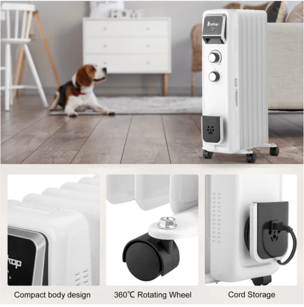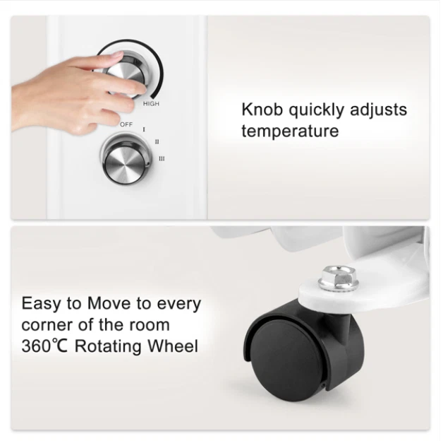 Stay Warm with the Best Oil Filled Radiator Heater β 1500W for Large & Small Rooms! Upgrade your indoor heating experience with our 1500W Oil Filled Radiator Heater , designed for large and small rooms alike. Whether you need warmth in your bedroom, office, or living space , this electric oil filled radiator space heater ensures efficient and consistent heating throughout the day. π₯ Why Choose Our Oil Filled Radiator Heater? β Powerful 1500W Heating β Perfect for extra large rooms , keeping your space cozy even in freezing temperatures. β Adjustable Heat Settings β Customize warmth with three heat levels to suit your needs. β Whisper-Quiet Operation β No fan noise, making it ideal for bedrooms, study rooms, and offices . β Overheat & Tip-Over Protection β Safety first! This oil filled radiator heater automatically shuts off if overheated or knocked over. β Portable with 360Β° Wheels β Move this oil filled radiator space heater effortlessly between rooms. β Energy-Efficient & Durable β The oil-filled fins retain heat longer, reducing energy costs while providing steady warmth. β Compact & Space-Saving Design β Perfect for small rooms , yet powerful enough for large areas . Perfect for Every Indoor Space! This oil filled radiator heater for indoor use is an excellent choice for homes, offices, and dorms. Whether you need a radiator heater for a small room or a large indoor space , this electric oil filled radiator heater will keep you warm and comfortable. Donβt let the cold take over! Get your 1500W oil filled radiator heater today and enjoy a warm and cozy home all winter long!