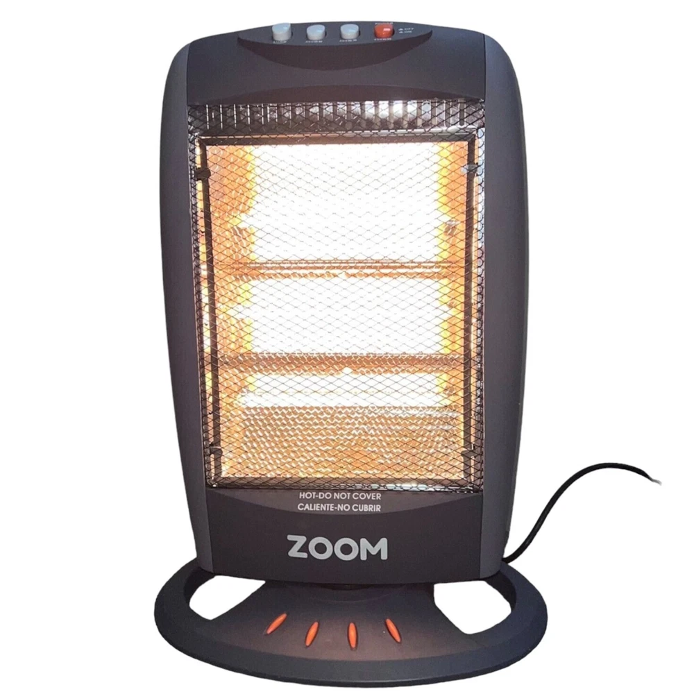 This ZOOM Halogen Space Heater is the perfect addition to any home or office. Its compact size and portable design make it easy to move from room to room, while its powerful heating system ensures that you stay warm and cozy all winter long. The heater comes in sleek black color and can be easily mounted on the floor, making it a great addition to any home decor. With a voltage of 120V and an electric power source, this space heater is incredibly efficient and easy to use. The halogen heating system ensures that you stay warm and cozy, while the compact design makes it easy to store and transport. This space heater is a great addition to any home or office, and is sure to keep you warm and comfortable all year long. It has 3 power settings and also oscillates to cover wider area.