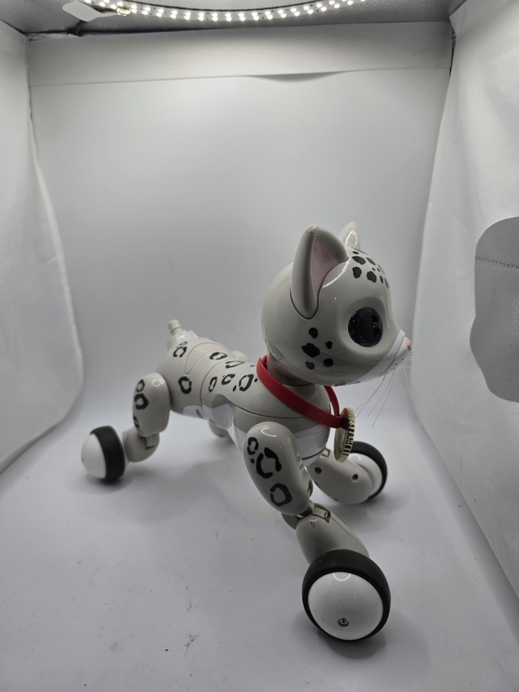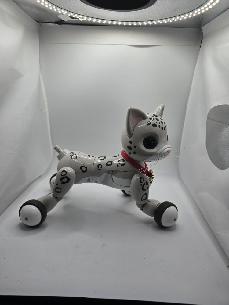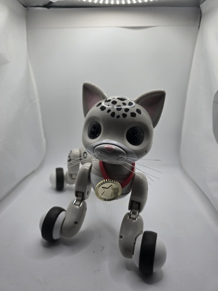 The ZOOMER KITTY ZOOEY is an interactive toy purr-fect for cat lovers of all ages. This playful robot, produced by WowWee, mimics the behaviors of a real kitten, with expressive movements and playful actions that will surely entertain and delight users. With its cute design and interactive features, this electronic toy brings a touch of whimsy and fun to playtime.