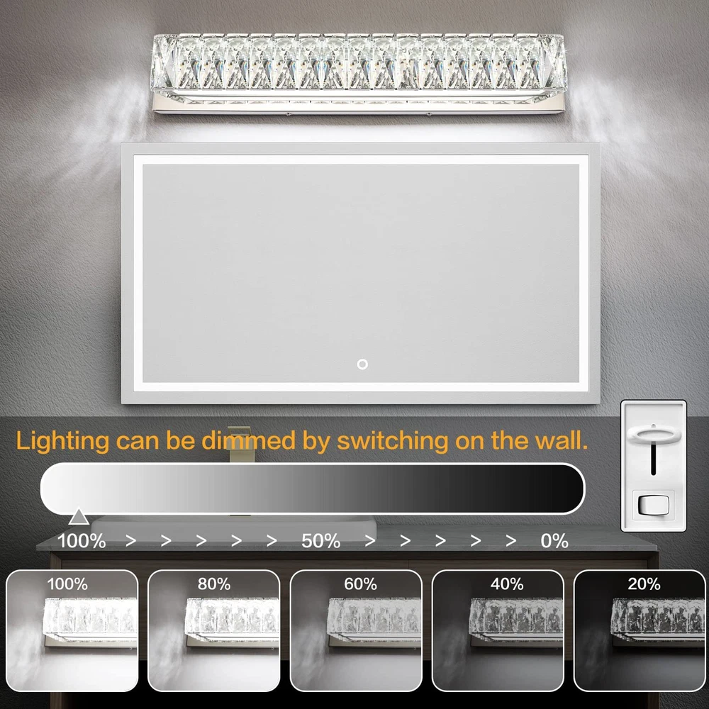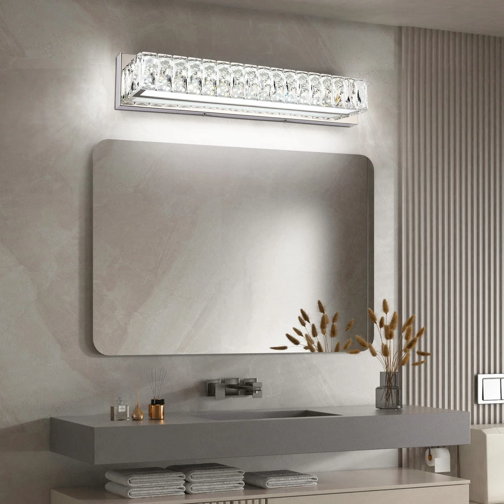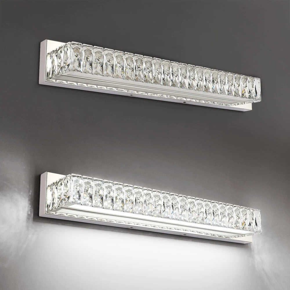 ZUZITO Modern Bathroom Light Fixtures - LED Vanity Lights for Bathroom 18W - Crystal Chrome Bathroom Lighting Fixtures Over Mirror Specification - The dimension of modern bathroom light fixture is 22.8” * 4.1” * 4.3”(L*W*H). This luxury bathroom vanity light is the perfect decoration to your home. Dimmable & Flicker-Free - The 18w vanity light is dimmable, you can adjust the brightness according to your usage habits. 0%-100% Smooth Dimmable without Flicker. Modern Gorgeous Design - The gorgeous bathroom light fixture is crafted of sturdy polished chrome stainless steel and high transmittance clear crystal glass. The Light shines through the crystals, emitting a colorful glow, adding a touch of agility and elegant to your bathroom. Easy & Quick Installation - This modern bathroom light fixture is pre-assembled, only need to mount onto the junction box on the wall(mounting screws are included in the package). Worry Free Service - We offer a full 2 YEAR warranty. If you have any problem with our bathroom vanity light, please feel free to contact us. Let U Know - We provide you replacement crystals for free (sometimes the crystal unfortunately get broken during shipping or installation), so please let us know the problem with the bathroom light and we will assist you immediately. Shipping We offer FREE shipping on all orders! We use a selection of shipping services such as UPS, FedEx, USPS etc. We only ship to the lower 48 states, no APO/FPO addresses or PO Boxes allowed. Local pickups and combined shipping options are not provided at this time. Return You can return a product for up to 30 days from the date you purchased it. Any product you return must be in the same condition you received it and in the original packaging. Please keep the receipt. Payment We accept payment by any of the following methods: PayPal Please pay as soon as possible after winning an auction, as that will allow us to post your item to you sooner! Feedback Customer satisfaction is very important to us. If you have any problem with your order, please contact us and we will do our best to make you satisfied. Contact Us If you have any queries, please contact us via ebay. We usually respond within 24 hours on weekdays. Please visit our eBay store to check out other items for sale! Thank you for shopping at our store.