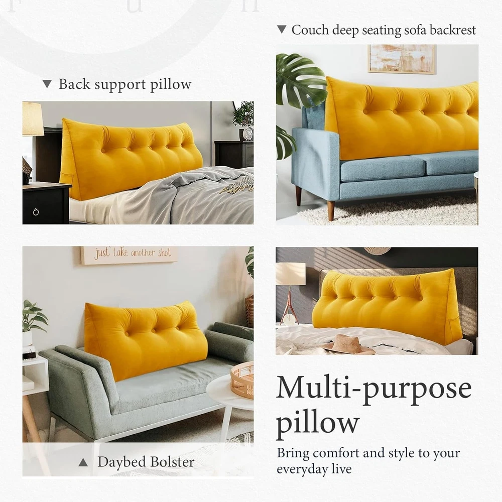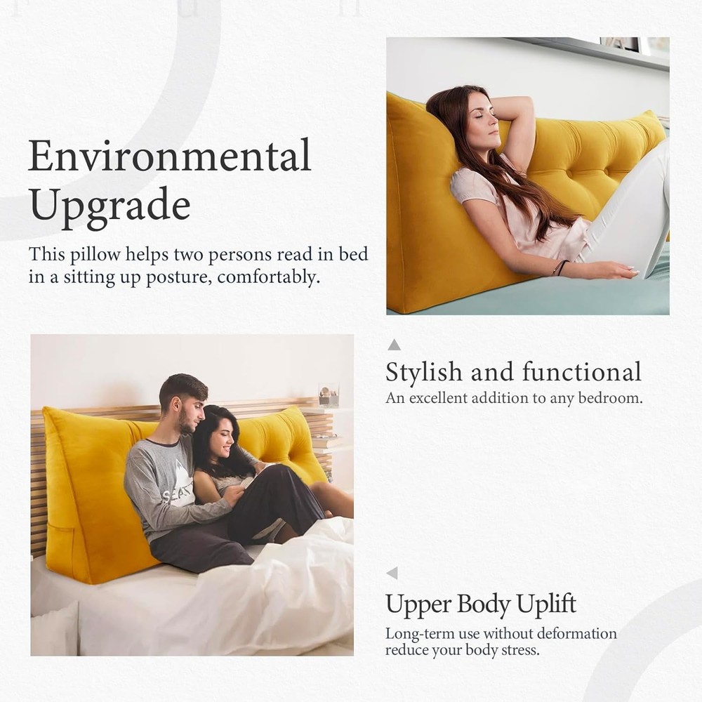 3 in 1 Large bolster Pillow: You can use the pillow upright as a back support headboard pillow for sitting in bed or lay it flat on the bed to use it as a large wedge pillow when sleeping on your back or side, or as a leg pillow to elevate your legs. If you want a large headboard pillow that provides support for both you and your spouse. It's an excellent alternative. Multifunctional Design: Some people use the triangle large cushion as a headboard pillow, while others use it as a bumper pillow, it's also can be a couch or daybed backrest bolster pillow. It's stylish as well as functional, making it an excellent addition to any bedroom. Superior Craftsmanship: The pillowcase is corduroy look which the composition is 100% polyester. our headboard pillow is breathable and comfortable enough to hold its shape and not lose its shape over time, A side pocket on each side allows you to slip your book or your phone. Easy to Wash: The reading pillow cover is attached to the pillow with buttons, and is easy to remove with a simple zipper. This makes its cleaning hassle free. Just remove the cover and do a quick machine wash to make your pillow look like new.