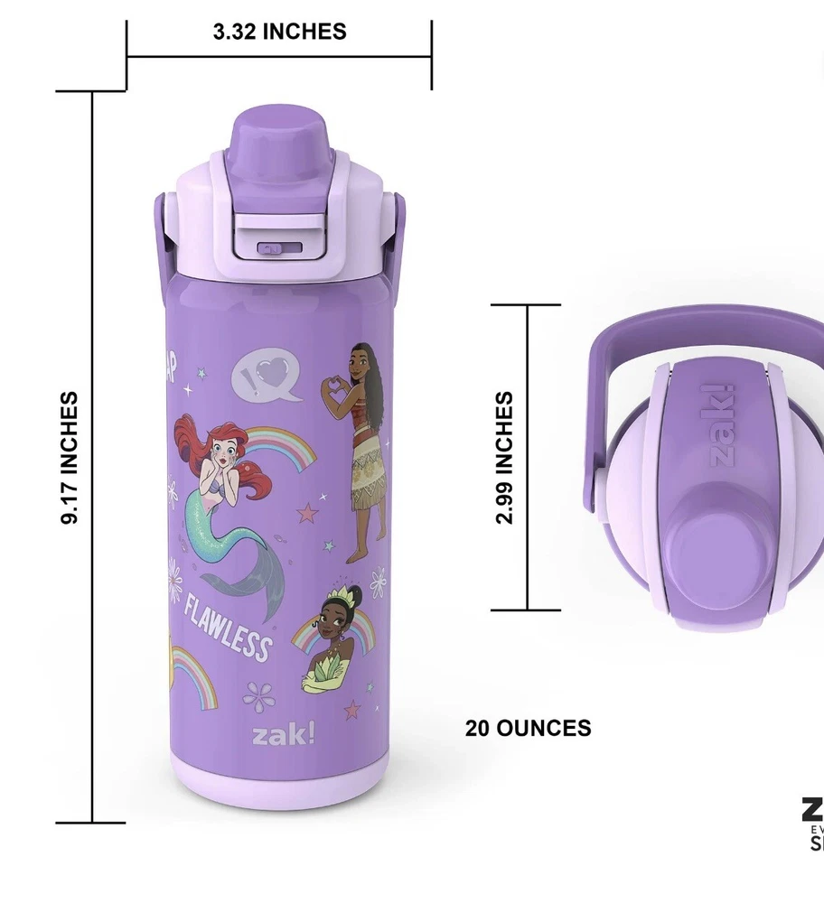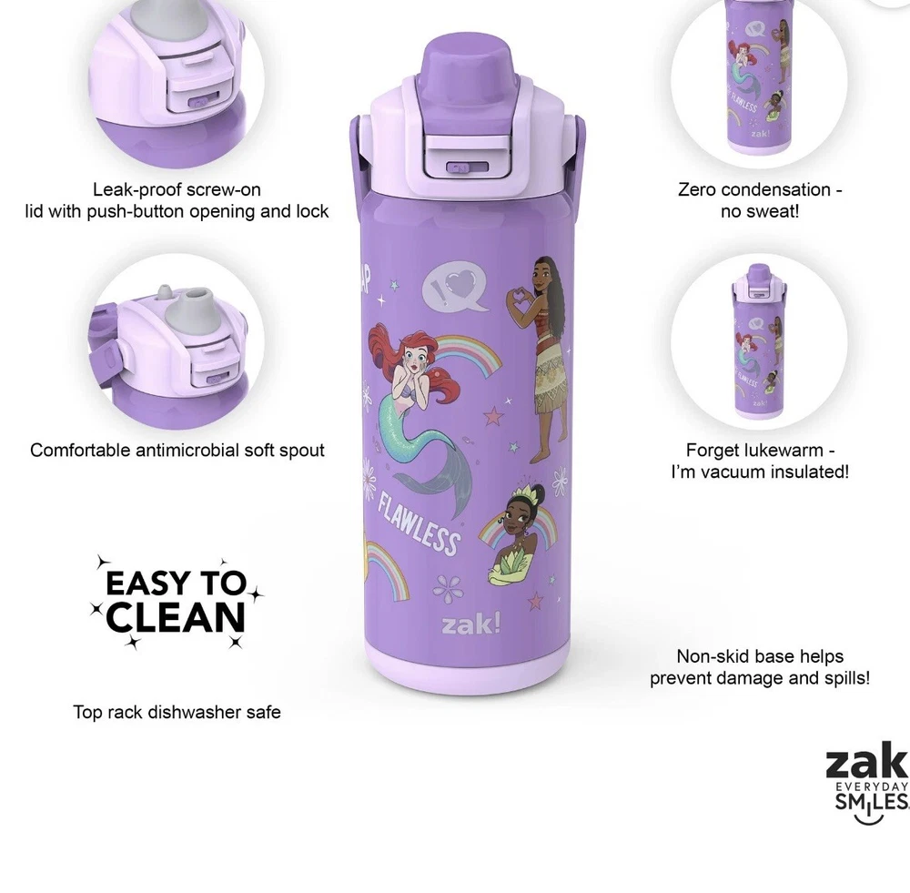 Zak Designs 20oz Princess Kids Straw Water Bottle, Stainless Steel. Condition is New. Shipped with USPS Ground Advantage.