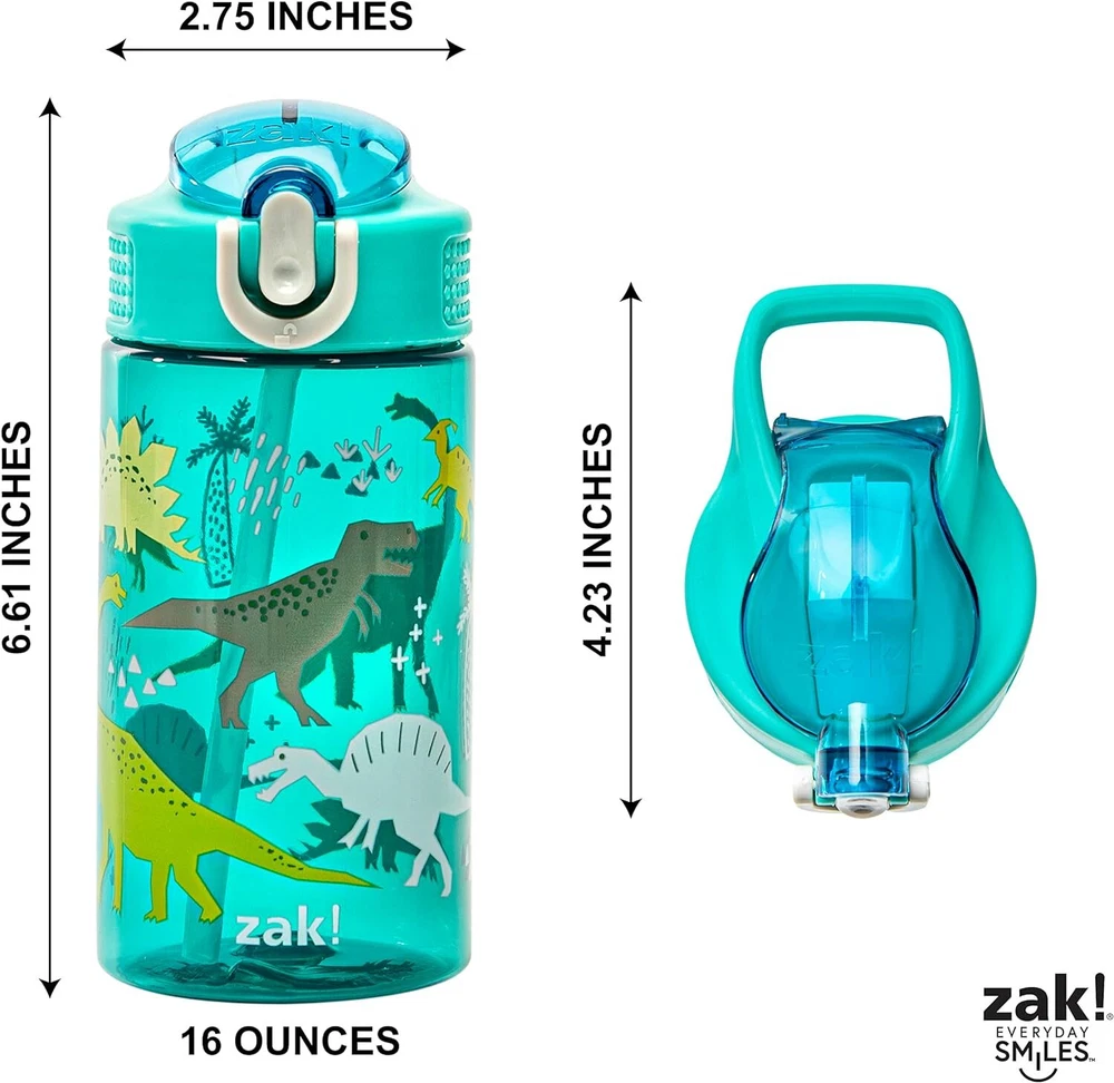 Zak Designs Kids Water Bottle For School or Travel, 16oz Introduction to Zak Designs Kids Water Bottle Ensure your child stays hydrated throughout the day with the Zak Designs Kids Water Bottle , a perfect companion for school, travel, and everyday activities. Designed with vibrant dinosaur-themed graphics, this water bottle is not only visually appealing but also highly functional. With a 16oz capacity, a convenient handle, a leak-proof design, and a pop-up spout cover with a straw, this water bottle is ideal for young children. Crafted from durable plastic, it can withstand the rigors of daily use while ensuring safety and ease of use. Product Features and Benefits Fun and Engaging Design The Zak Designs Kids Water Bottle features a playful dinosaur theme that appeals to children, making hydration fun and engaging. The colorful graphics are sure to capture your child's imagination and encourage them to drink more water. Durable and Safe Materials Constructed from durable plastic , this water bottle is designed to last. The materials are BPA-free and non-toxic, ensuring the safety of your child. It is also resistant to drops and impacts, making it ideal for active kids. 16oz Capacity With a 16oz capacity , this water bottle is perfect for keeping your child hydrated throughout the day. It holds enough water to last through school hours, sports activities, and travel, reducing the need for frequent refills. Leak-Proof Design The water bottle features a leak-proof design , preventing spills and leaks even when carried in a backpack. This ensures that your child’s belongings remain dry and safe from accidental spills. Pop-Up Spout Cover and Straw The pop-up spout cover protects the spout from dirt and germs, while the built-in straw makes it easy for children to drink without having to tilt the bottle. This design is especially helpful for younger kids and those on the go. Convenient Handle A sturdy handle makes it easy for children to carry the bottle, whether they are heading to school, the park, or a sports practice. The handle is comfortable to hold and provides a secure grip. Easy to Clean This water bottle is designed for easy cleaning. It can be disassembled quickly, allowing thorough cleaning of all parts. It is also top-rack dishwasher safe , making it convenient for busy parents. Eco-Friendly Choice By using a reusable water bottle, you are making an eco-friendly choice that helps reduce single-use plastic waste. Teach your children the importance of sustainability with this environmentally conscious product. Detailed Specifications Product Name : Zak Designs Kids Water Bottle For School or Travel Capacity : 16oz Material : Durable, BPA-free plastic Theme : Dinosaur Dimensions : 7.5 inches tall x 2.9 inches diameter Weight : 4.8 ounces Color Options : Multiple vibrant colors with dinosaur graphics Spout Cover : Pop-up, hygienic cover Straw : Built-in, easy to drink Handle : Sturdy and comfortable for easy carrying Cleaning : Top-rack dishwasher safe Safety : BPA-free, non-toxic materials How to Use the Zak Designs Kids Water Bottle Filling the Bottle Unscrew the lid to fill the bottle with water or your child's favorite drink. Ensure the liquid does not exceed the maximum fill line to avoid spills. Using the Pop-Up Spout To drink, press the button to pop up the spout cover. Sip through the straw without having to tilt the bottle. Carrying the Bottle Use the handle to carry the bottle securely. Attach it to a backpack or lunchbox using a carabiner if needed. Cleaning the Bottle Disassemble the bottle by removing the lid, straw, and spout cover. Wash all parts thoroughly with warm soapy water or place them on the top rack of the dishwasher. Benefits of Using Zak Designs Kids Water Bottle Promotes Hydration The fun dinosaur design and easy-to-use features encourage children to drink more water, helping them stay hydrated and healthy throughout the day. Reduces Waste Using a reusable water bottle helps reduce the reliance on single-use plastic bottles, promoting a more sustainable lifestyle. Safe and Durable Made from BPA-free, non-toxic materials, this water bottle ensures your child's safety while being durable enough to withstand daily use. Convenient for Parents and Kids The leak-proof design, easy cleaning, and convenient handle make this water bottle a practical choice for both parents and children. Hygienic and Easy to Use The pop-up spout cover keeps the drinking spout clean, while the straw makes it easy for children to drink without spills. Customer Reviews Perfect for School! “My son loves his new dinosaur water bottle! It’s the perfect size for his backpack, and the handle makes it easy for him to carry. No more spills, and he drinks more water now.” – Jessica M. Durable and Fun “This water bottle has been dropped numerous times and still looks brand new. The dinosaur design is a hit with my daughter, and I love that it’s BPA-free and safe.” – Mark T. Great for Travel “We take this bottle everywhere. It’s perfect for car rides, park visits, and even on the plane. The pop-up spout cover keeps it clean, and it’s easy to wash.” – Emily R. Frequently Asked Questions (FAQs) Q: Is this water bottle dishwasher safe? A: Yes, the Zak Designs Kids Water Bottle is top-rack dishwasher safe, making it easy to clean and maintain. Q: What age range is this water bottle suitable for? A: This water bottle is suitable for children of all ages, particularly those who enjoy fun, engaging designs. Q: Is the water bottle BPA-free? A: Yes, this water bottle is made from BPA-free, non-toxic materials, ensuring the safety of your child. Q: Can I use this bottle for drinks other than water? A: Absolutely. You can fill the bottle with water, juice, or any other beverage your child enjoys. Q: How do I clean the straw? A: The straw can be removed for thorough cleaning. Use warm soapy water or a straw brush to clean it properly. Conclusion The Zak Designs Kids Water Bottle 