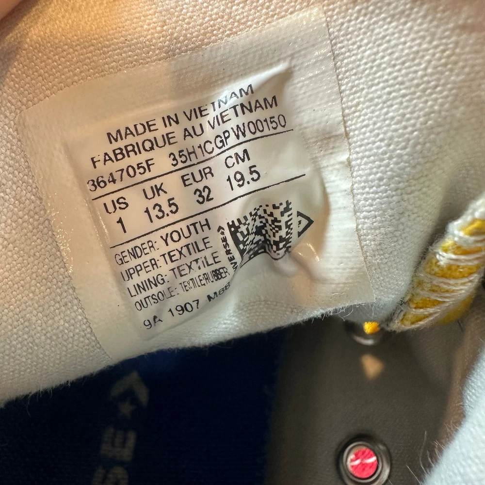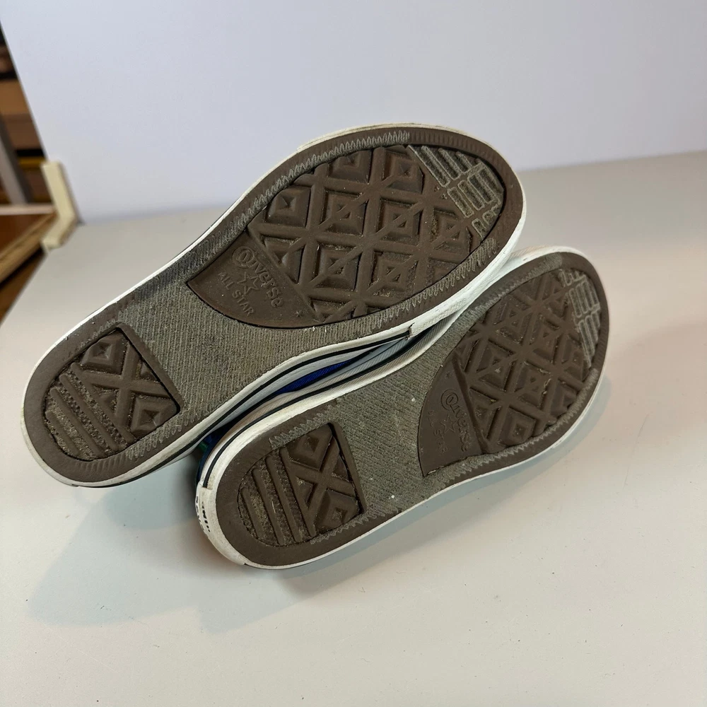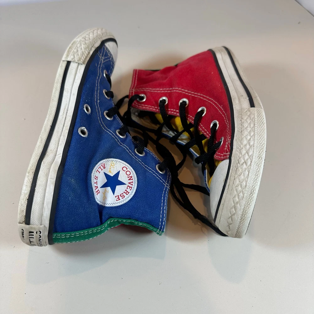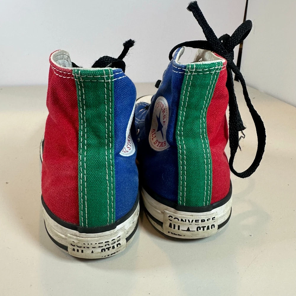 Converse Colorblock High Hi Top Chuck Taylor All Star Sneakers Little Kid Size 1 Primary color colorblock high tops, red blue yellow green. Gently worn, no flaws or major wear, see photos for details, wear. Size 1 little kid/youth, fit us around age 8, YMMV.