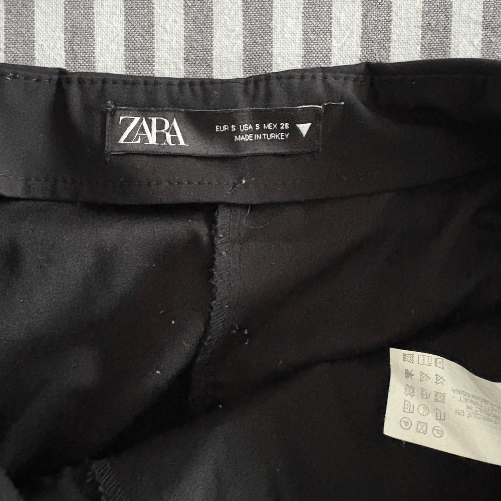 Zara Black Pleated Skirt with Hidden Shorts - Women’s Size Small - Great condition, small white spot on back shown in pics - Black Polyester/elastane - Size zipper - 12” length 15” (30”) waist flat measurement