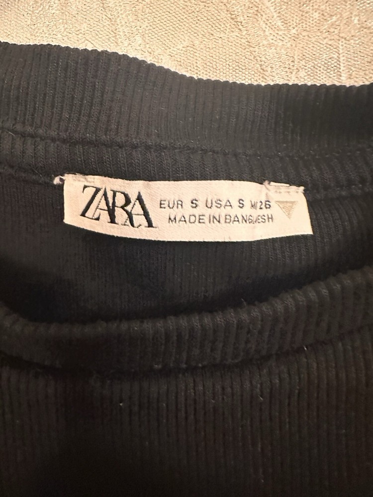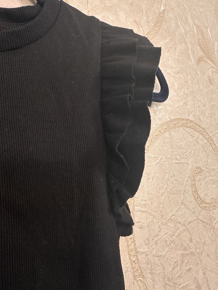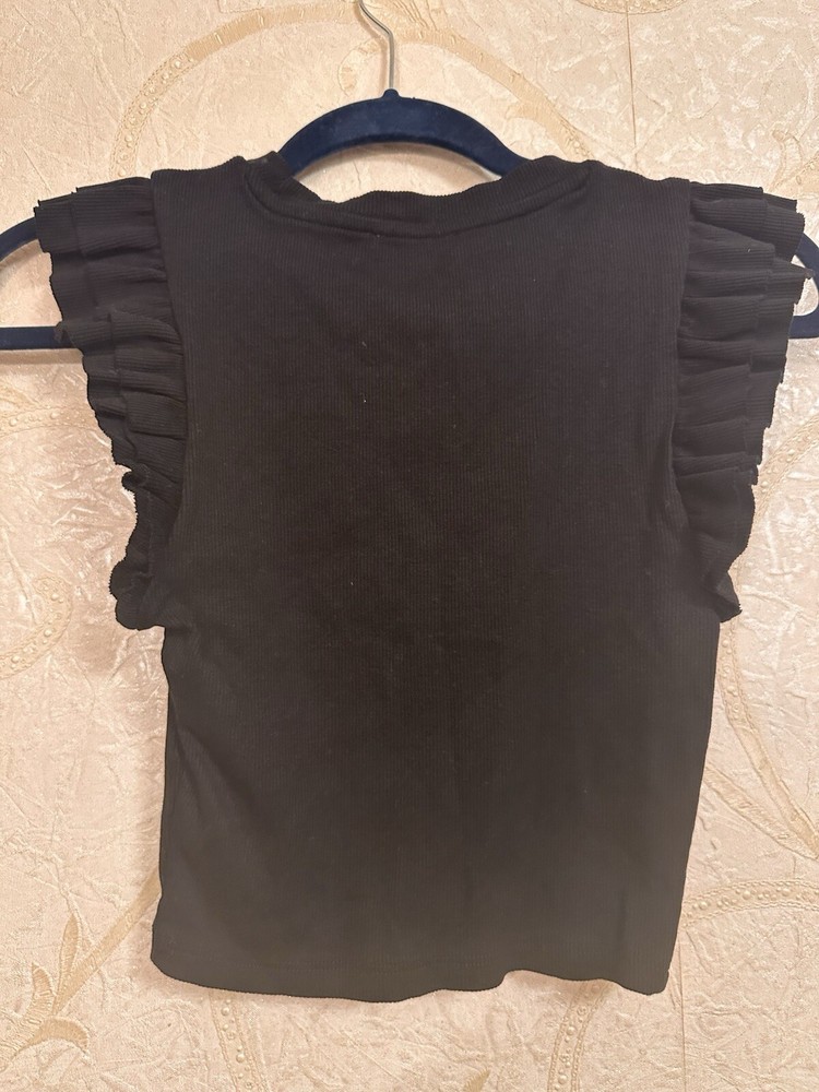 Zara Crop Top Ruffle Sleeves Women's Size Small Black. Condition is Pre-owned. Shipped with USPS Ground Advantage.