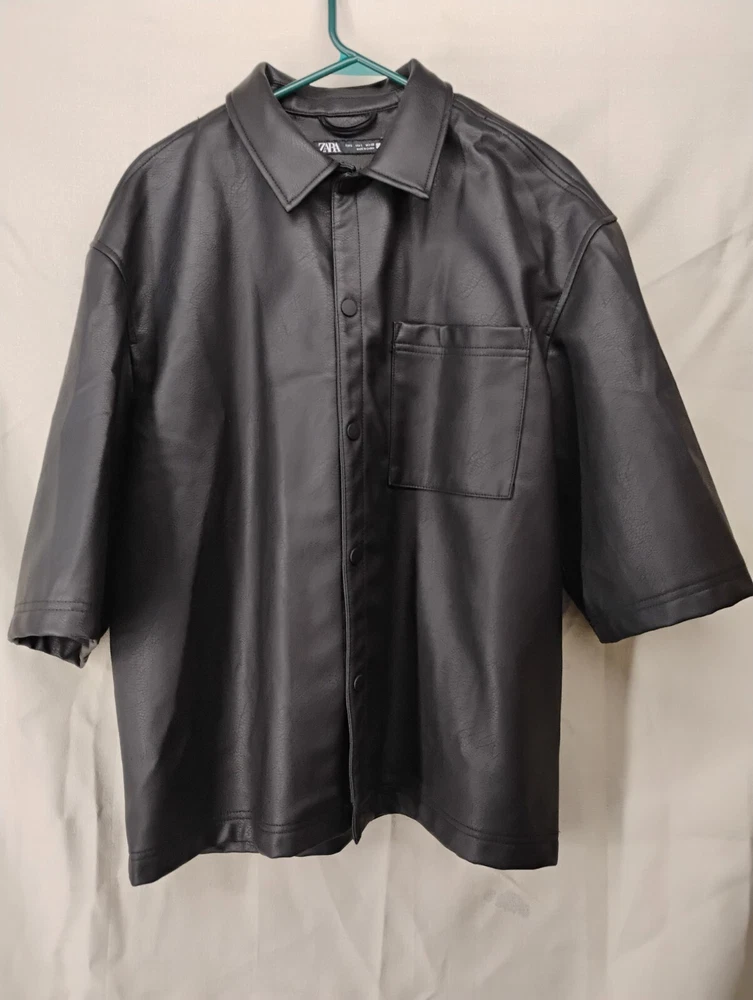 The Zara Faux Leather Overshirt in black is a stylish men's button-up shirt crafted from faux leather material. This edgy shirt features short sleeves and a regular fit in size large, suitable for a casual and trendy look. Perfect for layering over a t-shirt or pairing with jeans for a fashionable ensemble. The black color and leather material give this shirt a versatile and modern vibe, ideal for adding a dose of sophistication to any outfit. Thank you for visiting my listing today and thank you for your interest in this item! My goal is to have a pleasant transaction resulting in a satisfied customer. I hope any transaction between us leaves you with a feeling of confidence knowing you can trust me and the items I offer here. *Most if not all my listings are set to accept offers. Feel free to send an offer and I will be happy to consider it!! *Please contact me with any questions or concerns and I will be happy to help. *Always examine the photos carefully, and if in doubt, email me with any questions you may have. *Please note that condition statements are offered as a guide only. They will always be somewhat subjective and reflect our opinion, which may not necessarily agree with someone else's opinion. PLEASE READ: I aim to please and I want my buyers to have a positive transaction with me. If you have questions, concerns, or special requests related to any of my items I hope you will contact me so we can work them out to your satisfaction. I sell my items to give you a great item at a decent price while making a little profit at the same time. If you feel the item you are interested in is too pricey do not hesitate to send me a fair offer and I will consider it. My goal is to satisfy your needs and mine so both parties can benefit. SHIPPING: If you prefer a different shipping method or company please contact me and I will do all I can to make that happen. If you have concerns or requests about the packaging of your item contact me and I will do all I can to accommodate them. Shipping costs are based on location in each state or country, the costs always differ. After I have received your payment I will ship your item out within 3 business days or less excluding weekends and holidays. BEFORE PURCHASING & BIDDING: **Please see all the pictures. I do not have great photography skills but I try to get the most accurate photos I can. If you are unsure about something you see in a photo contact me so I can do what I am able to answer your concern about the item. **I cannot stress enough that if you have any questions or concerns please contact me before purchasing and bidding. Communication can solve so much. **As a customer myself, I understand the meaning of customer satisfaction and my goal is to have nothing but satisfied customers. If you are not unsatisfied with your purchase I ask that you please contact me so I can take care of your issue. My goal is for you to be 100% satisfied. INTERNATIONAL BUYERS WELCOMED - PLEASE NOTE: I welcome International buyers! Please be aware that any custom/duties/taxes that the parcel might incur once it is out of the USA are the responsibility of the buyer. Please check with your country's customs office to determine what these additional costs will be prior to bidding or buying. Please refer to the eBay Site Map for more information if needed.